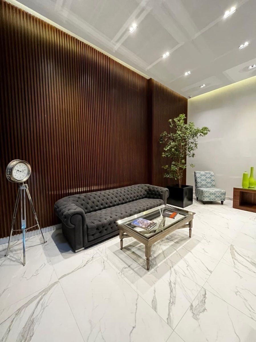 OS BANHEIROS TÊM PORTAS DE ALUMÍNIO COM VIDRO TEMPERADO, E HÁ LUZ INDIRETA AO REDOR DOS ESPELHOS. TAMBÉM TEM UMA PEQUENA TERRAÇO OU VARANDA ONDE VOCÊ PODE COLOCAR SEU CHURRASQUEIRO. TODO O PISO DO APARTAMENTO É DE PORCELANATO.