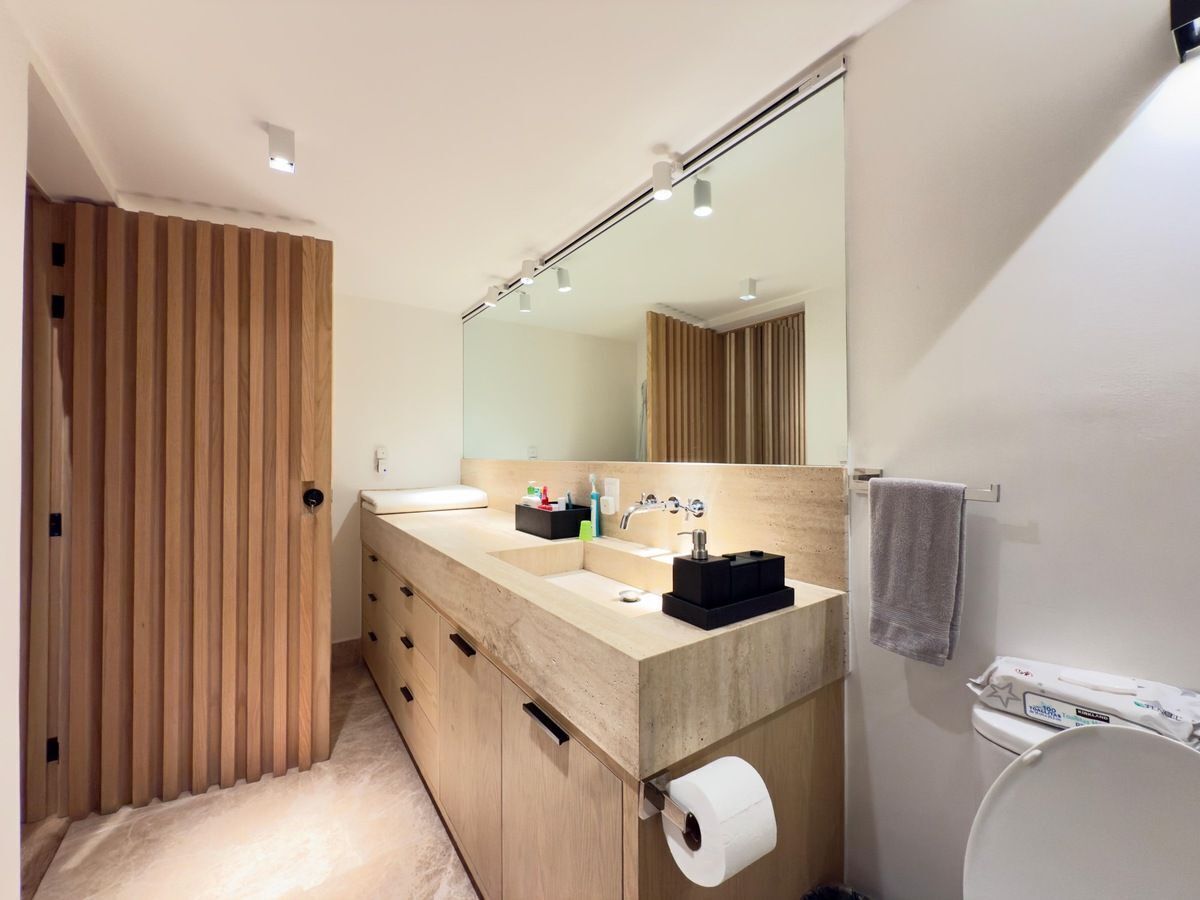 • Persianas no andar superior e cortinas blackout elétricas em todos os quartos
