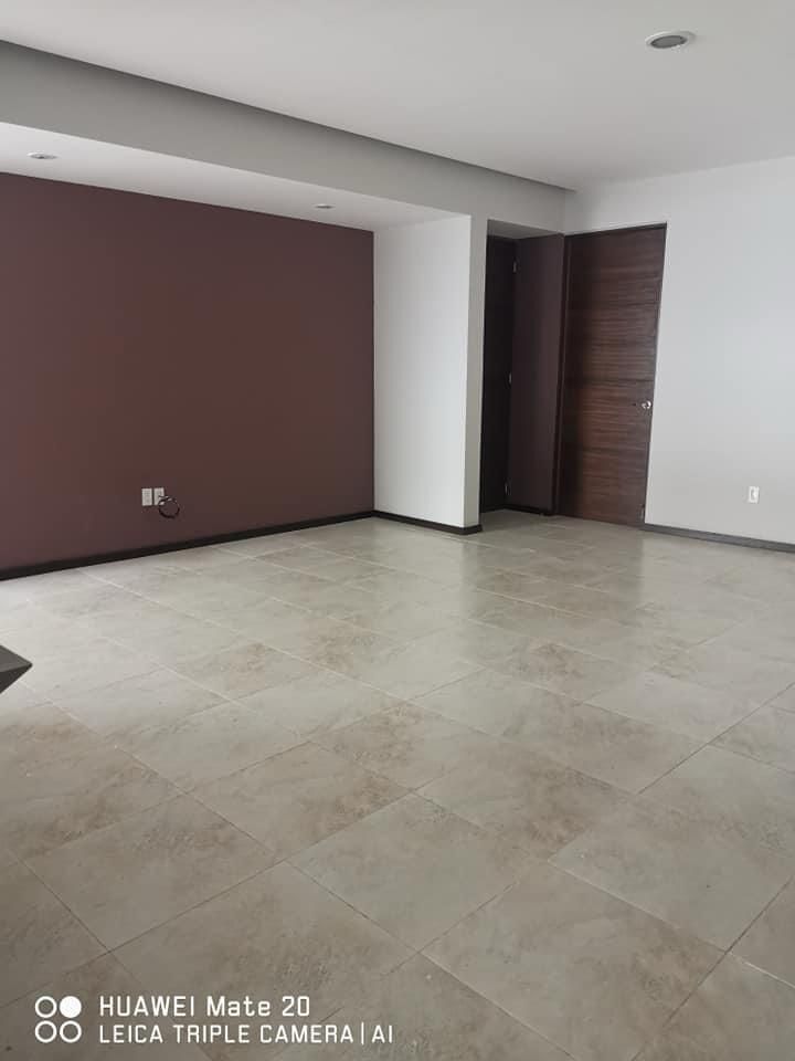 El departamento tiene tres recámaras, cada una con su baño completo, amplios e iluminados espacios, cuenta con bodega, terracita y estudio.