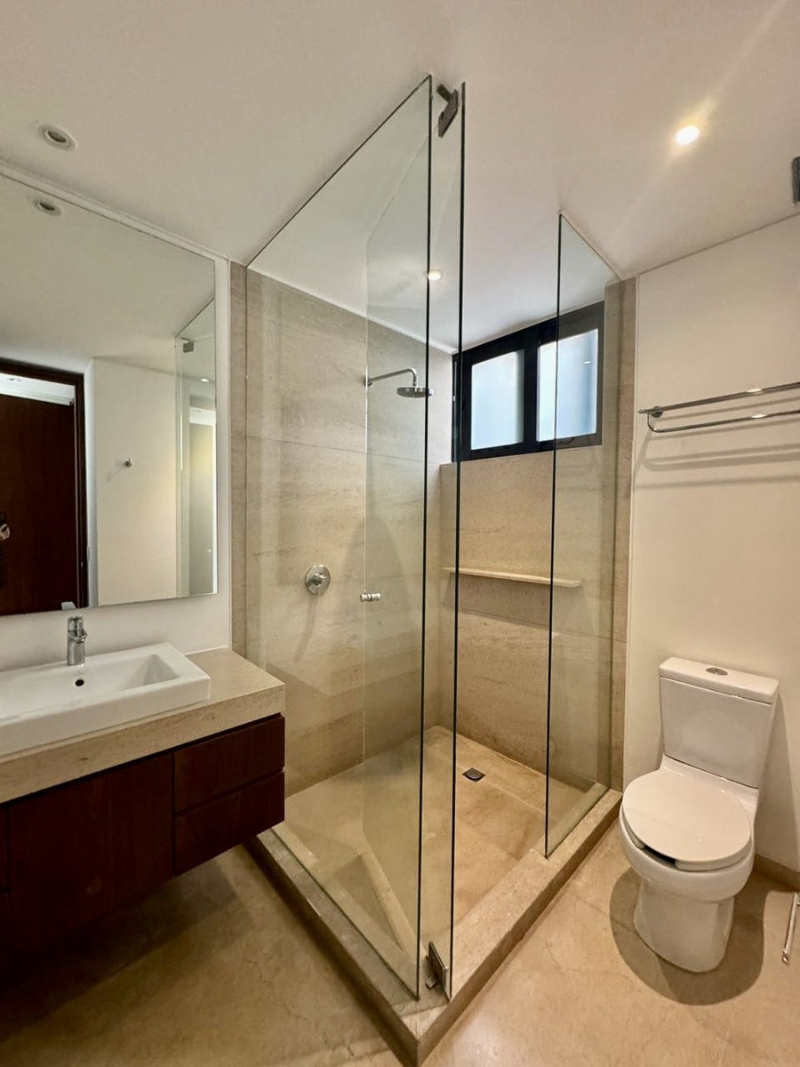 3 recámaras, cada una con baño completo. Recámara principal con vestidor, secundarias con closet
