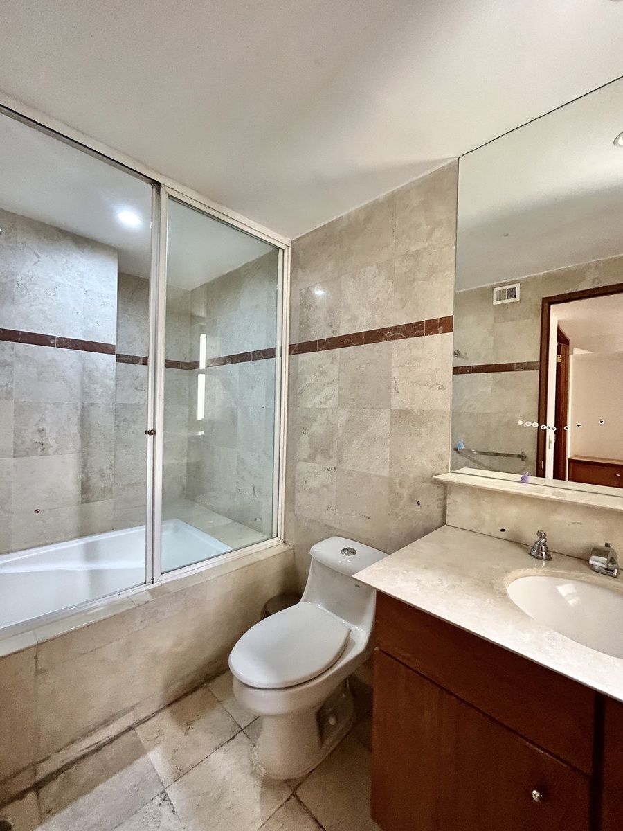 Departamento con tres recamaras cada uno con baño y vestidor, cuarto de tv y puerta que separa el area social del familiar , también cuenta con cocina amplia con desayunador y cuarto de lavado y de servicio.