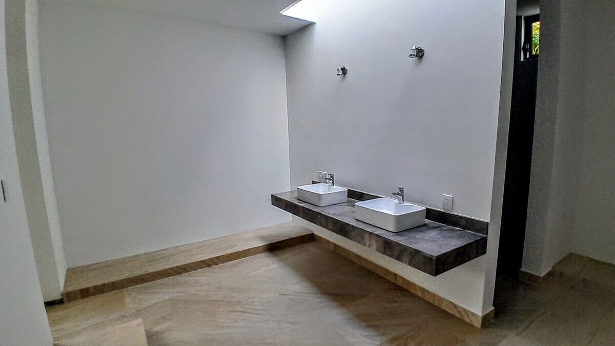 Recámara principal, amplia, con baño completo con doble lavabo y clóset vestidor.