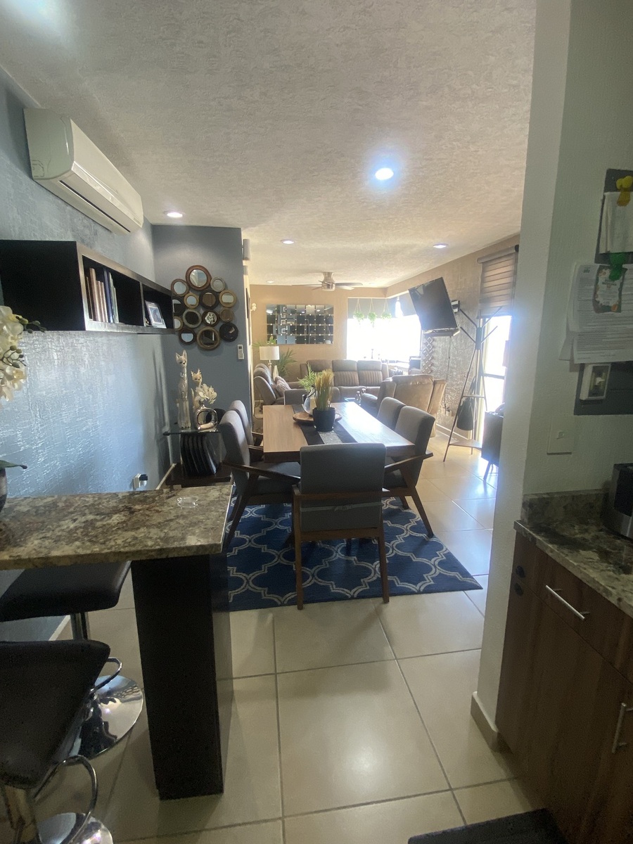 El departamento está equipado con 3 mini splits y cortinas tipo roller en cada ventana .