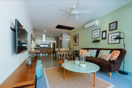 Immediate delivery, Fully furnished, 3 Bedrooms each with closet, 2 Bathrooms, Full kitchen, A/C in each bedroom, living room, and dining room, Amenities: Roof with beautiful ocean view, Pool, , 24-hour security.