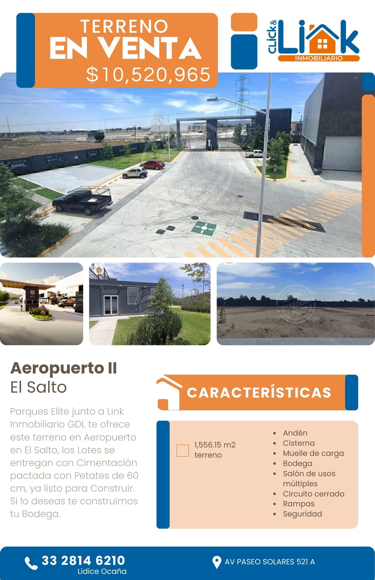 Parques Elite junto a Link Inmobiliario GDL te ofrece este terreno en Aeropuerto en El Salto, los Lotes se entregan con Cimentación pactada con Petates de 60 cm, ya listo para Construir.