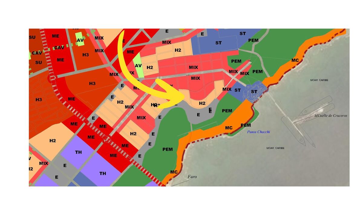 Lote sobre Avenida Caribe con vistas desde el tercer nivel.A 350 metros en linea recta del mar y a unas cuadras del puerto de cruceros Costa Maya