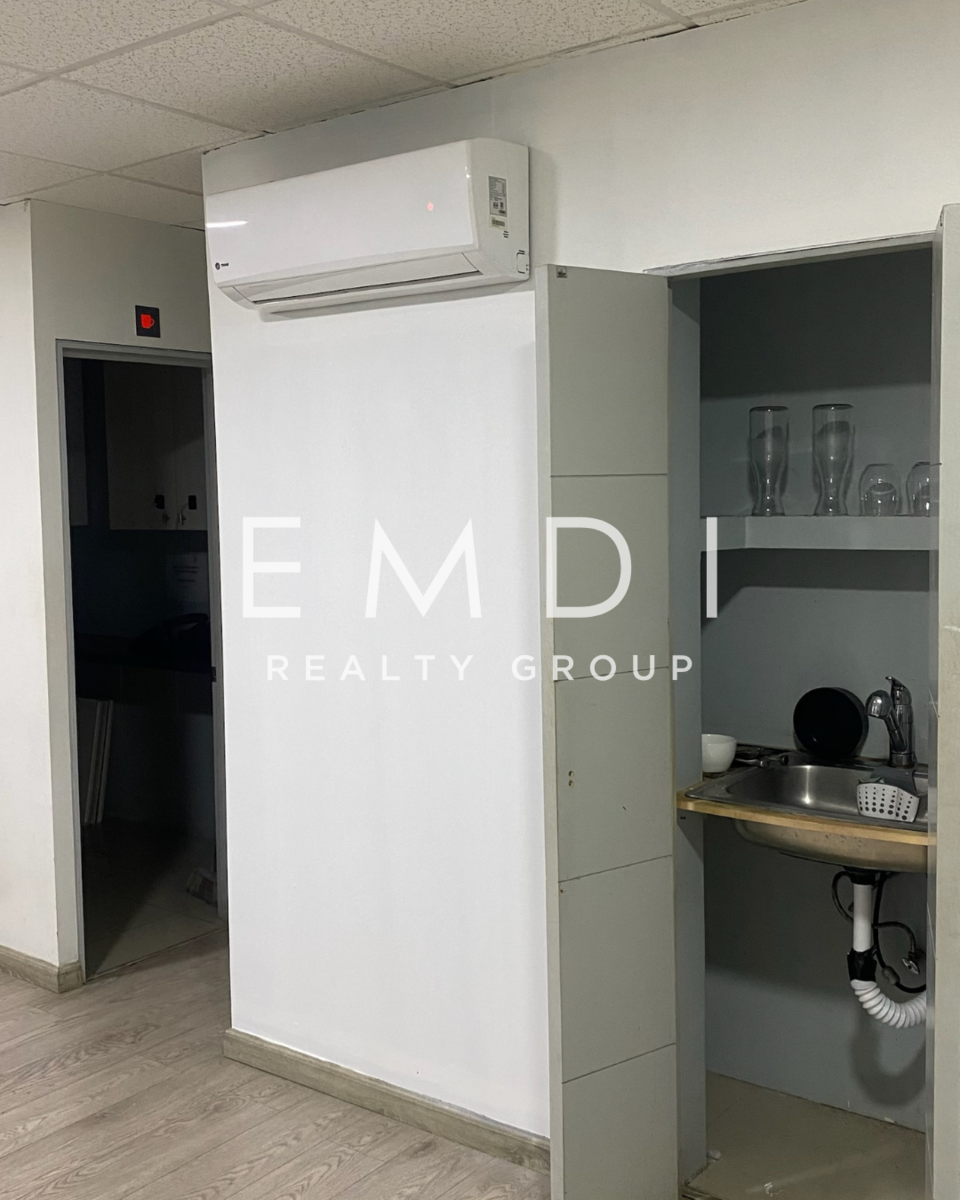 Cuenta con dos mini splits en el local, dos medios banos, closet con tarja para limpieza, cocineta con barra, divisiones de areas con cristal templado.