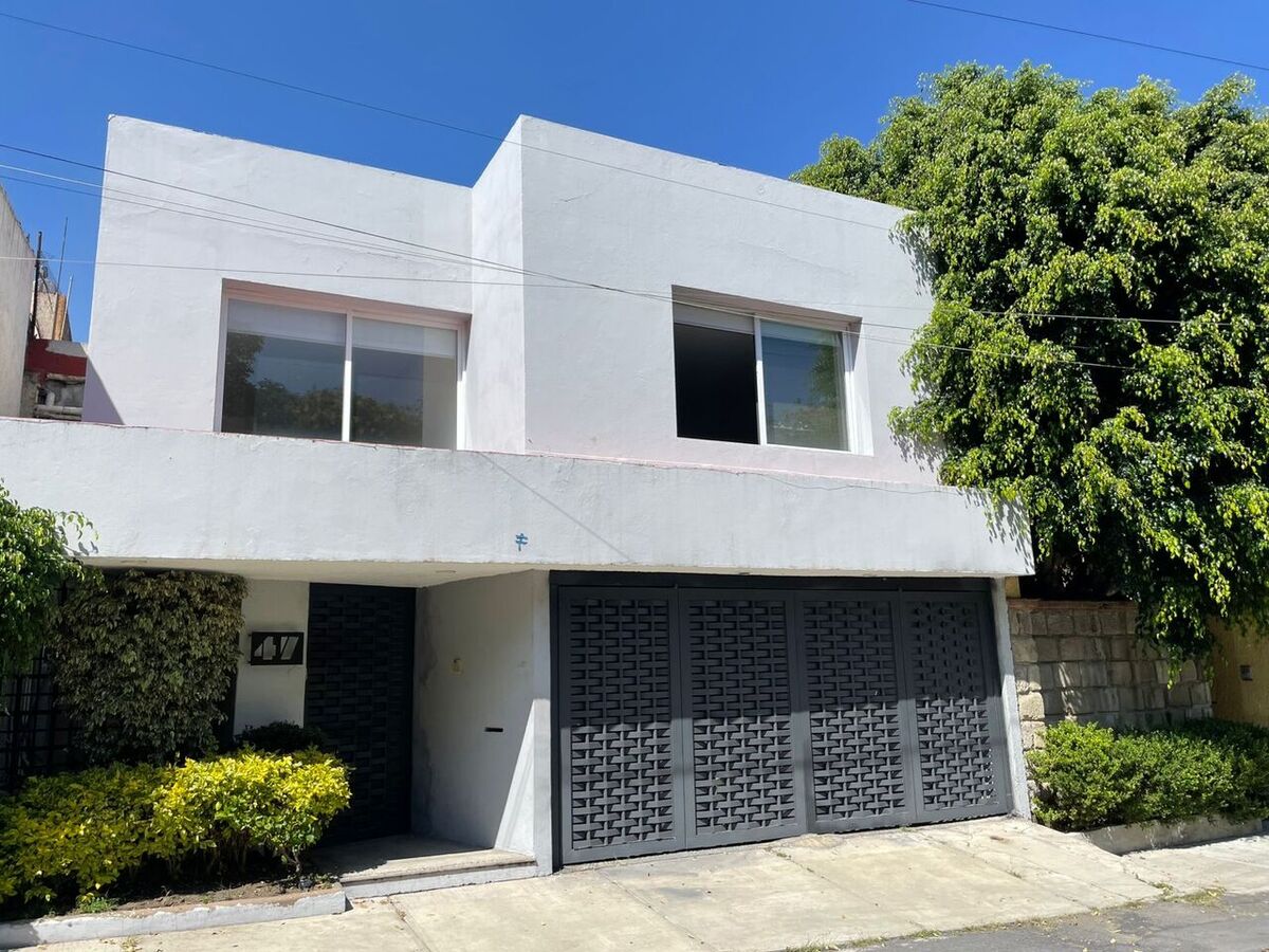 Su sala y comedor salen al jardín plano que, al cruzarlo se encuentra una casa pequeña de dos pisos con sala comedor, cocina, dos recámaras y un estudio, así como dos baños.