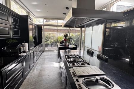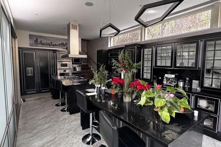 No nível inferior, uma grande área com piscina, espreguiçadeiras, uma grande adega e sala de jogos.Residencia privada en lo más exclusivo de CDMX