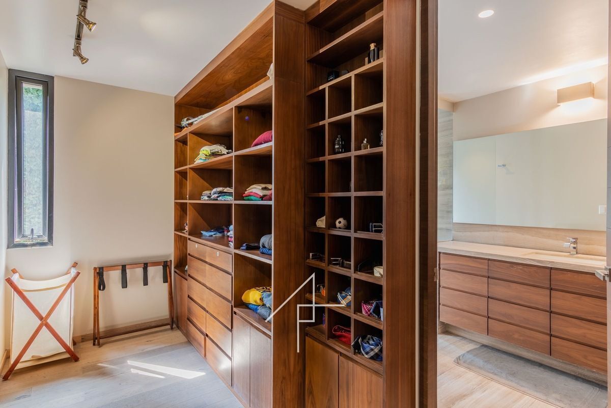 5 quartos, cada um com seu próprio banheiro e closet. Dois deles têm escritório e terraço.