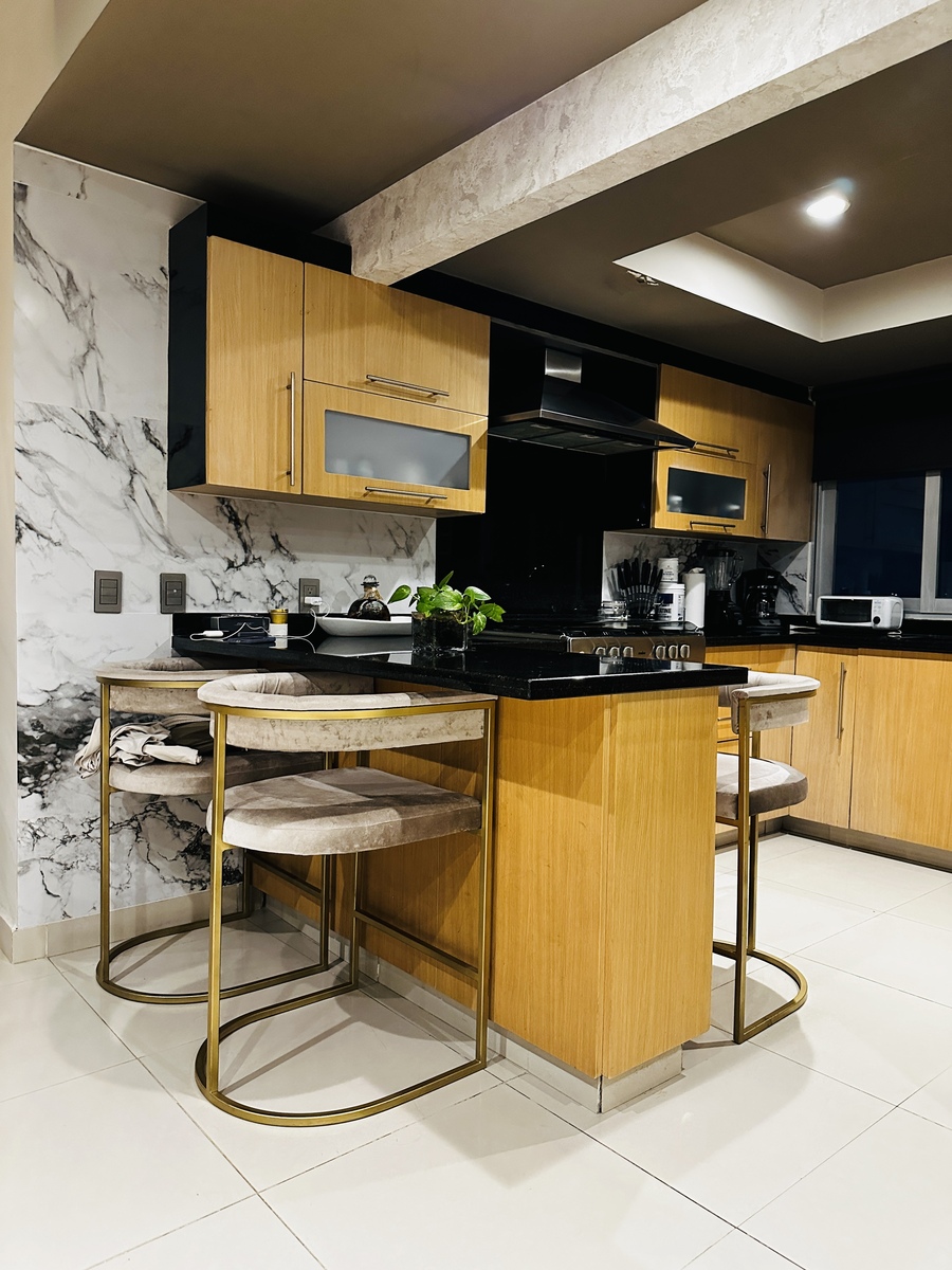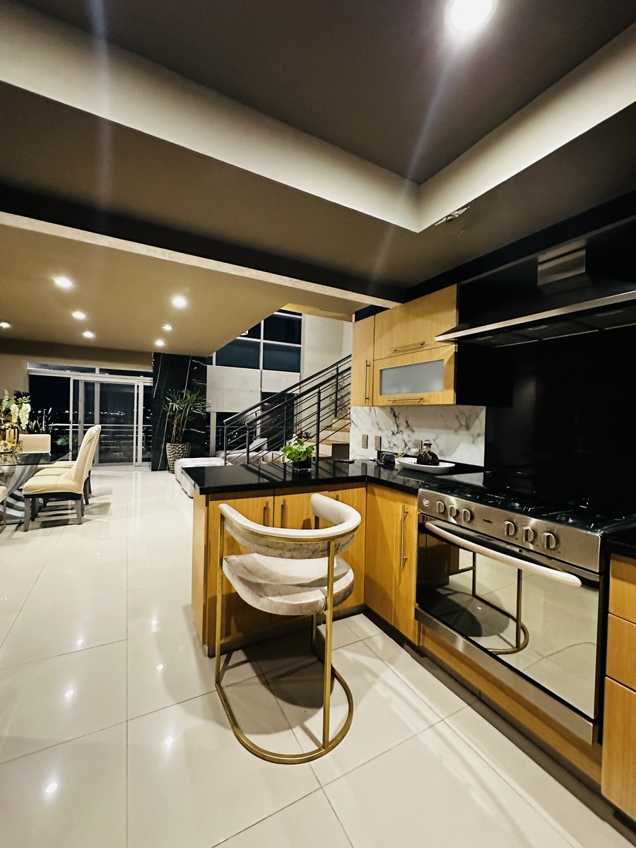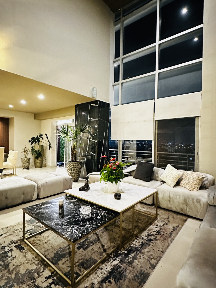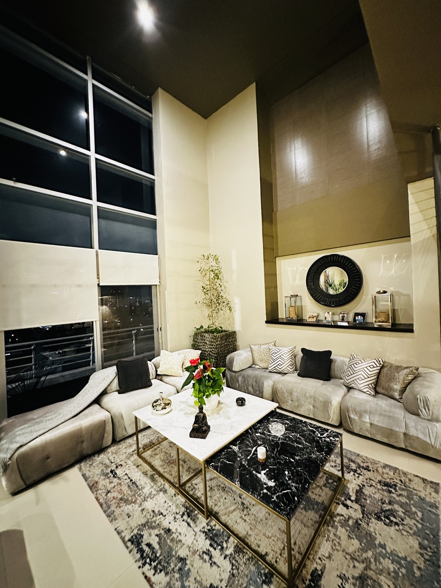 Con su doble altura, orientación Norte- sur que mantiene fresco el departamento, amplitud, sofisticación, lujo y elegante, con muebles de primera, decoración y con todo lo necesario para vivir.