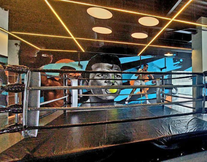 Academia com equipamentos de última tecnologia, sala de spinning, ringue de boxe,