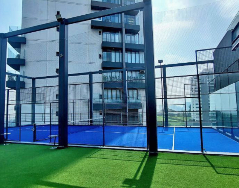 Campo de futebol, quadra de paddle, cafeteria,