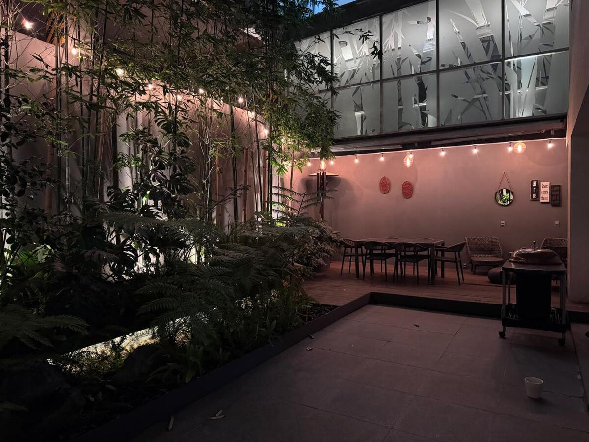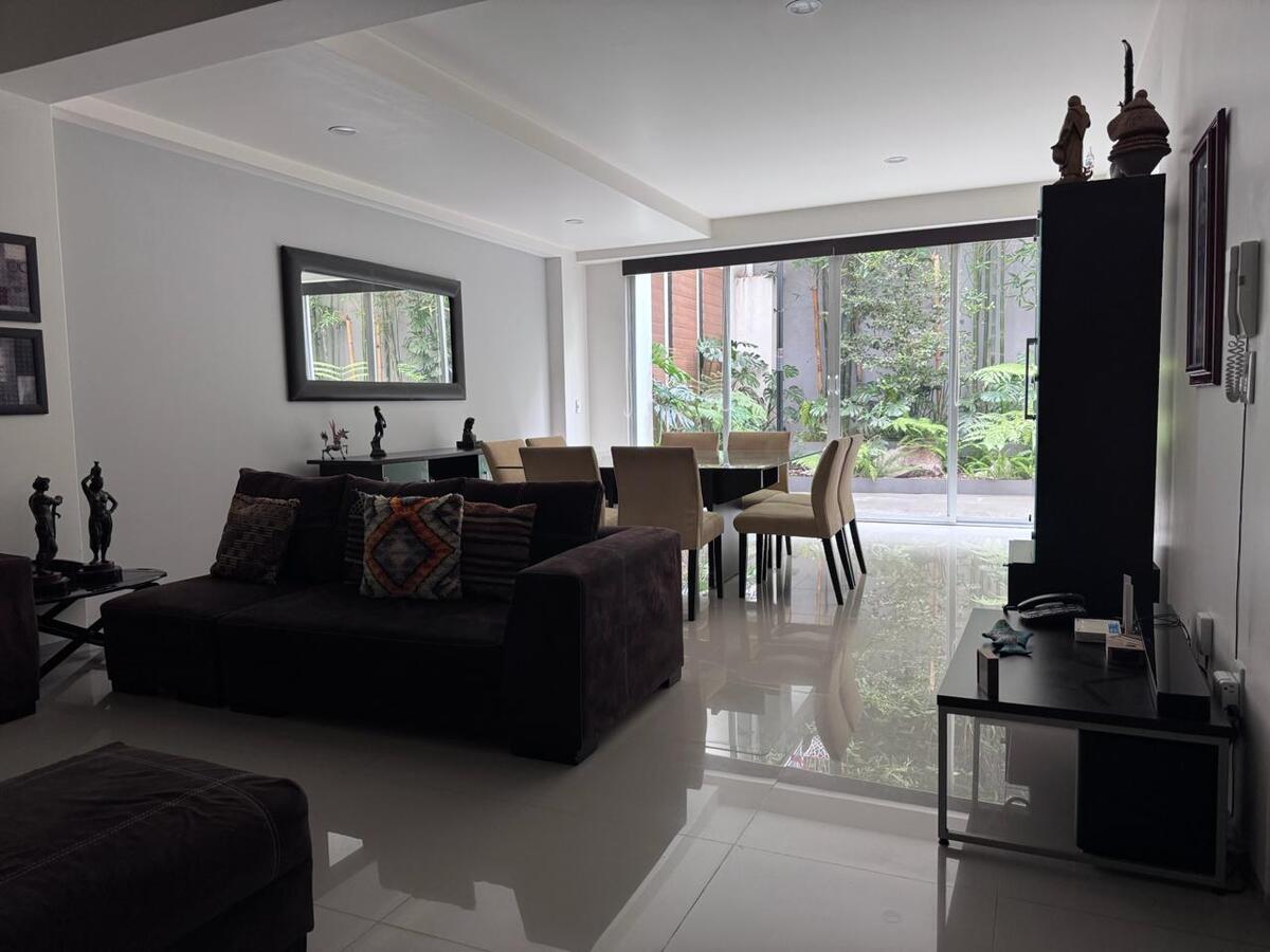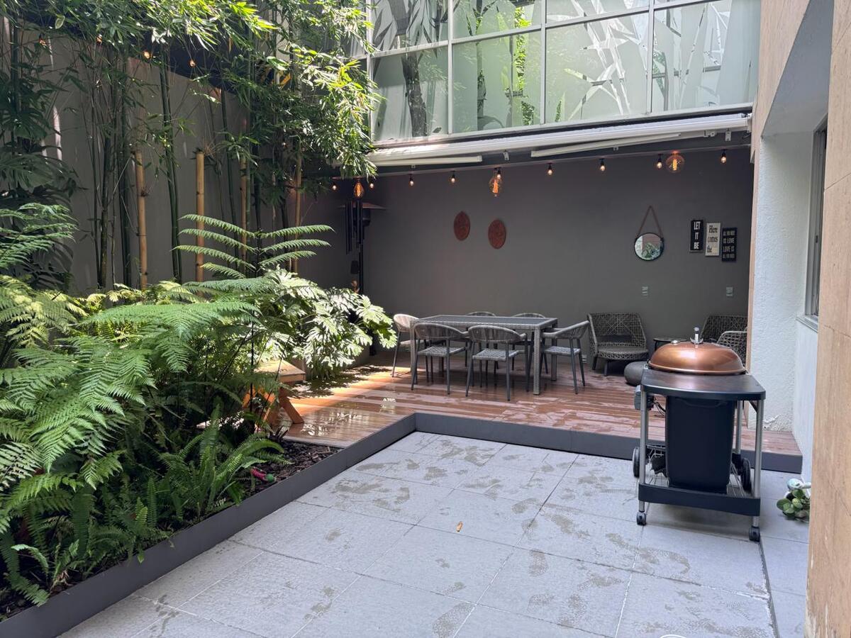 Departamento muy amplio, cuenta con recibidor, sala comedor, ½ baño, cocina con espacio para desayunador, terrazas privadas con área verde, carpa eléctrica y luz indirecta.