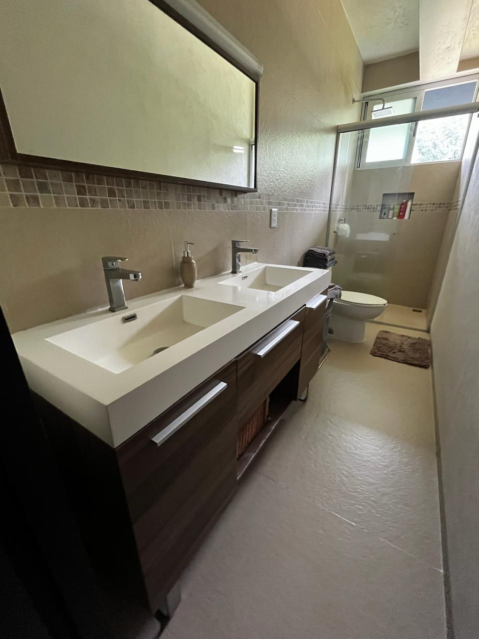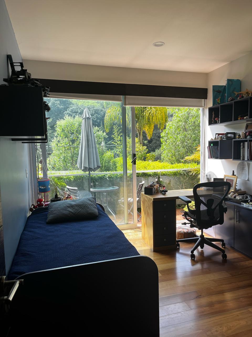 Tres recamaras cada una con baño completo, la principal y una secundaria con amplias terrazas y vista al jardín comunal.