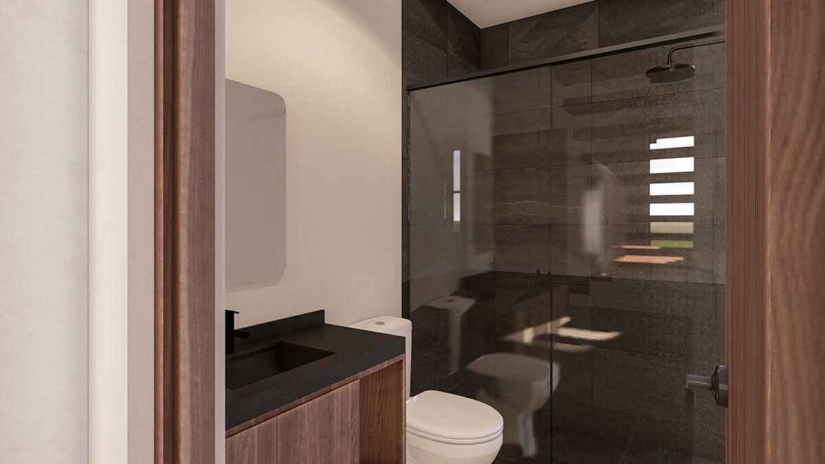 com banheiro completo cada um (com divisórias de vidro temperado e pias de