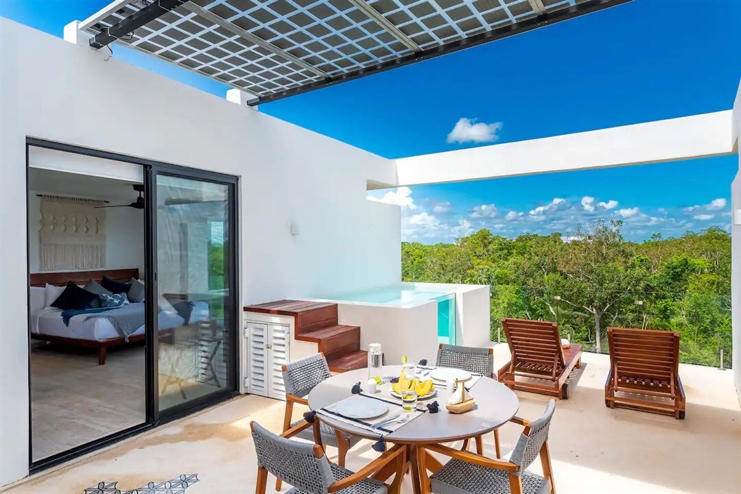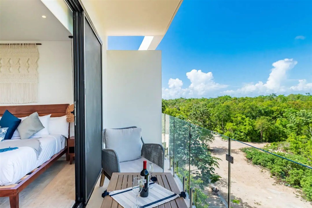 Penthouse con cocina equipada, baño completo, balcón con vista a la selva y terraza privada con asador. Cuenta con jacuzzi al aire libre y un segundo baño completo en el área exterior. Ideal para disfrutar de privacidad, comodidad y un entorno natural exclusivo.