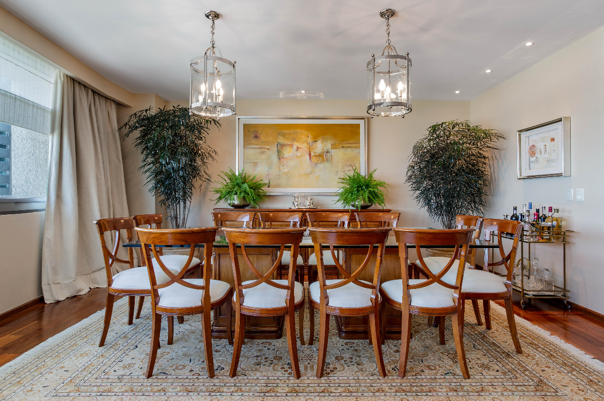 Sala, sala de jantar, cozinha, área de café da manhã, lavanderia, 2 quartos de serviço.