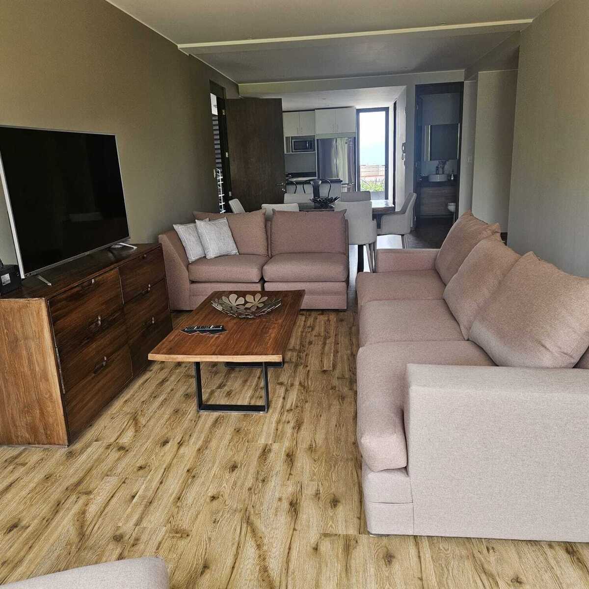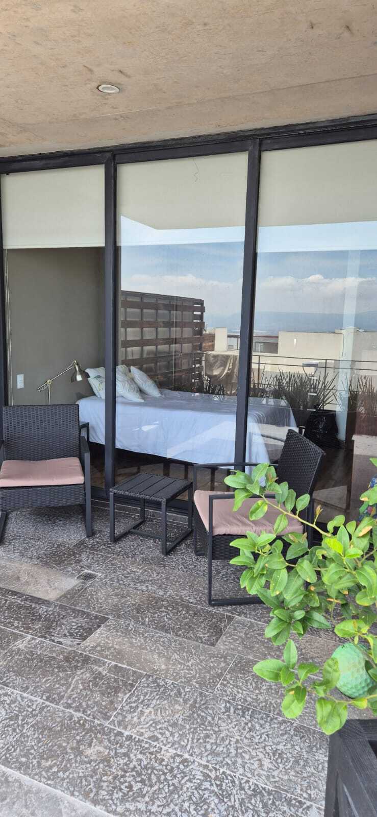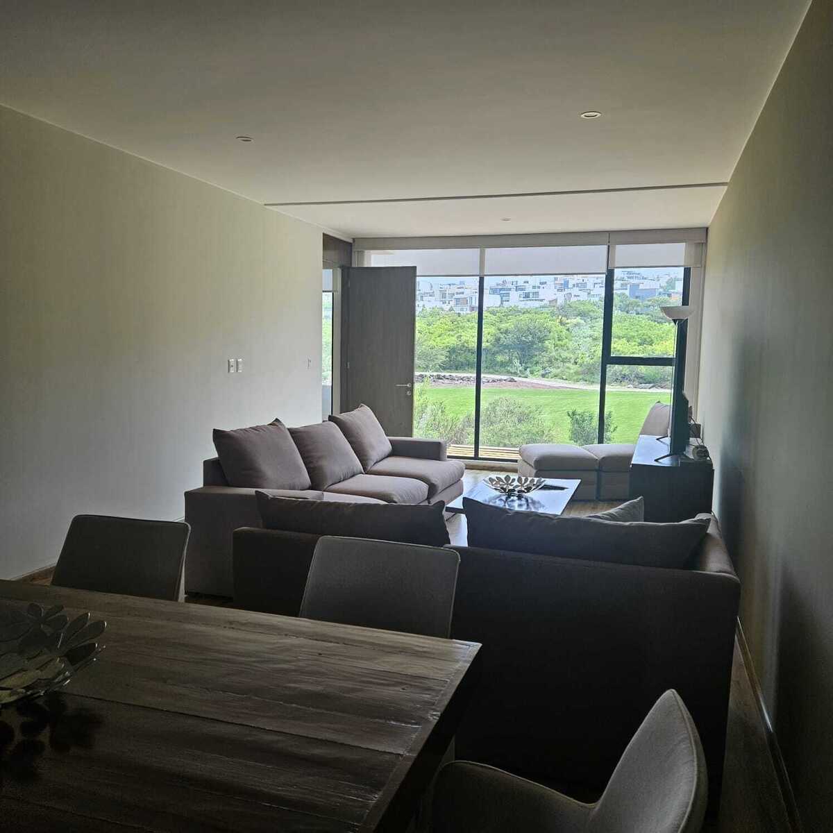 AE - Cuenta con 2 recámaras, 2.5 baños amueblados, salón-comedor, cocina con electrodomésticos GE y amplia terraza. Las dos recámaras cuentan con su baño independiente y la recámara principal cuenta con vestidor y balcón con vistas al campo de golf. Todas las ventanas con persianas y blackout en recamaras. 2 plazas de aparcamiento. Este departamento exclusivo con vistas al campo de golf de 18 hoyos, se encuentra en el desarrollo residencial Zibatá, El Marqués (Querétaro). Este desarrollo residencial recibió el premio International Property Awards 2016 como el mejor desarrollo residencial de uso mixto del mundo. Igualmente el campo de golf obtuvo el premio International Property Awards 2016 como el mejor campo de golf de Latinoamérica.  Zibatá cuenta con parques y áreas verdes dotadas de canchas de pádel, basquetbol, futbol, vías exclusivas para pasear, 3 centros comerciales, universidad Anáhuac y contara con un lago y náutica para embarcaciones sin motor (actualmente en construcción). El departamento pertenece a un complejo residencial en régimen de condominio con 56 departamentos en total. Cuenta con alberca, zonas verdes, gimnasio, business center, salón de eventos. Se dispone de triple filtro de seguridad.