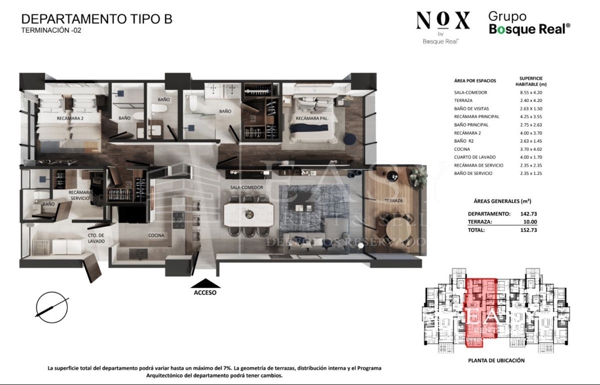 O preço refletido na publicidade não considera despesas de escritura nem impostos ou qualquer outra despesa gerada pela compra do imóvel. As imagens, acabamentos, vistas e detalhes estéticos são ilustrativos. Consulte nossos assessores para detalhes sobre plantas, distribuições e lista de acabamentos. Preço e disponibilidade sujeitos a alteração sem aviso prévio. Verifique com nossos assessores as informações atualizadas. As medidas são aproximadas e devem ser corroboradas com títulos de propriedade e/ou recibos fiscais. O processo de compra e venda é realizado perante um notário público. Esta publicação não é uma oferta pública. Toda transação requer autorização expressa dos proprietários e deve ser realizada de acordo com nossas práticas comerciais. Operações de crédito: O preço total varia de acordo com os montantes de crédito e despesas notariais. Consulte para mais detalhes. Métodos de pagamento: O pagamento pode ser feito com recursos próprios ou com financiamento hipotecário de qualquer instituição, pública ou privada, sujeito à negociação que as partes chegarem na compra e venda e às políticas da instituição correspondente. Consulte nosso aviso de privacidade em nosso site.Invierte en NOX by Bosque Real, pensado para elevar tu calidad de vida dentro del exclusivo fraccionamiento Bosque Real Country Club.