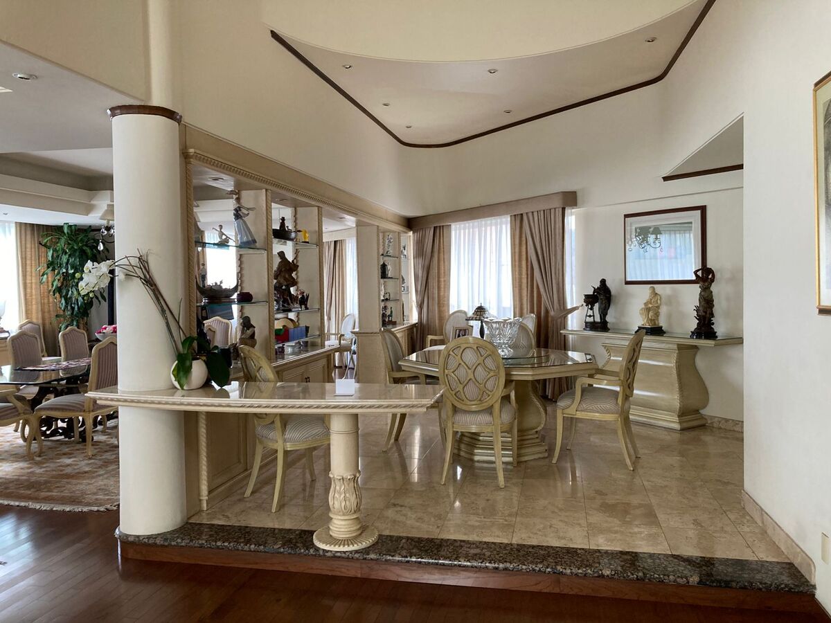Planta Social: Hall de entrada cuja escada leva a um segundo espaço de recepção, onde você encontra o banheiro de visitas e uma pequena despensa. Continuando pela majestosa escada, chegamos à sala principal com uma vista maravilhosa, saída para um grande solário, a sala de jantar de grande tamanho com a mesma vista, um antecâmara e a enorme cozinha com despensa e saída para as escadas de serviço, assim como a uma gigantesca despensa. Nesta mesma planta temos um enorme escritório privado com banheiro completo e grande terraço.