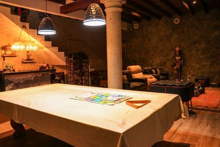 O ambiente externo serve como um quadro de recepção para todo tipo de eventos sociais, olhe para a piscina para ver seu reflexo, cativando e encantando com tanto detalhe artesanal de nossa cultura colonial, onde sua pedra vestem cada uma de suas fachadas, seus arcos e suas janelas. Eles criam um ritmo e uma repetição de uma arquitetura requintada.