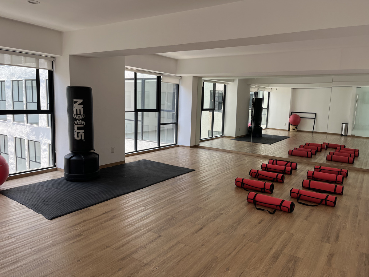 con juegos infantiles; también amenidades para adultos como alberca, salón de yoga,
