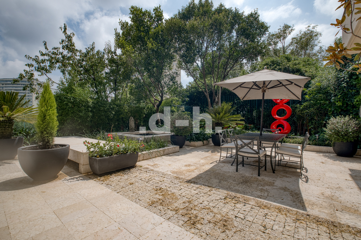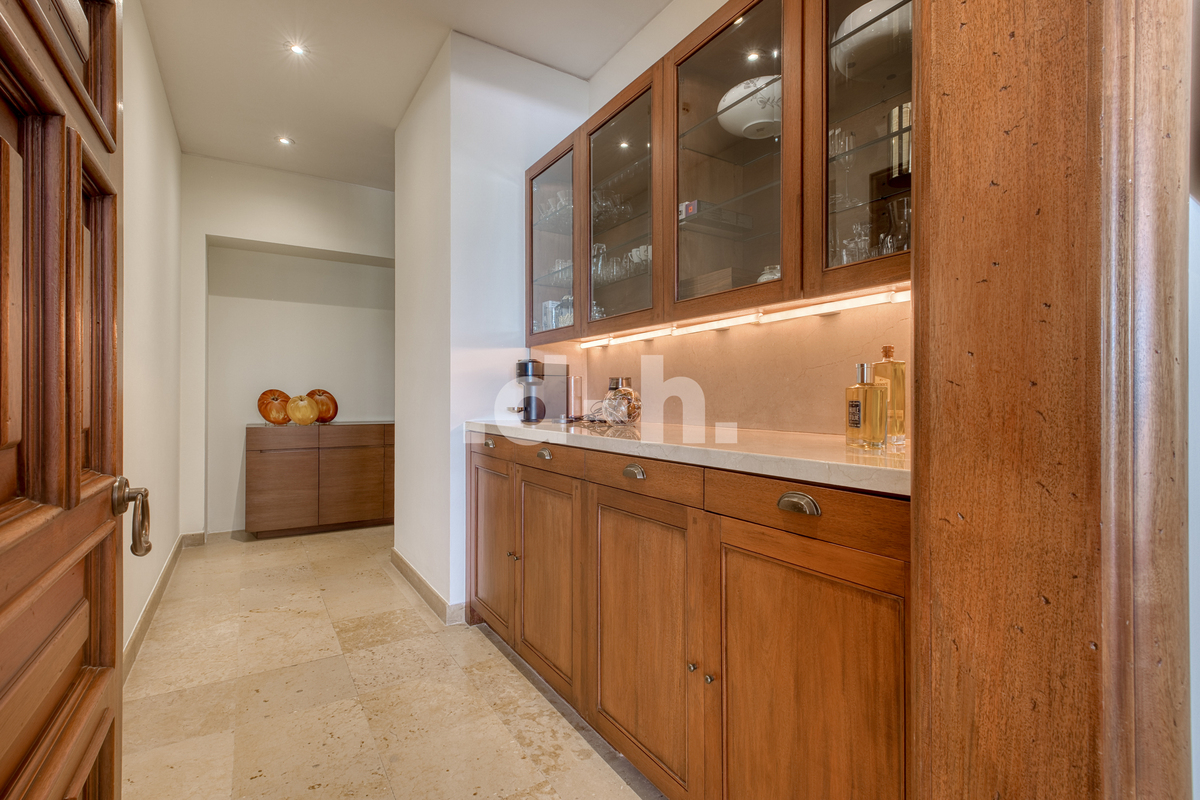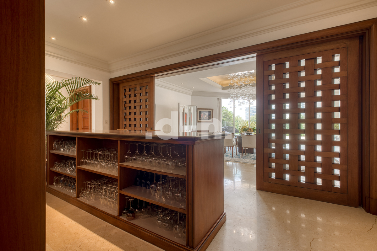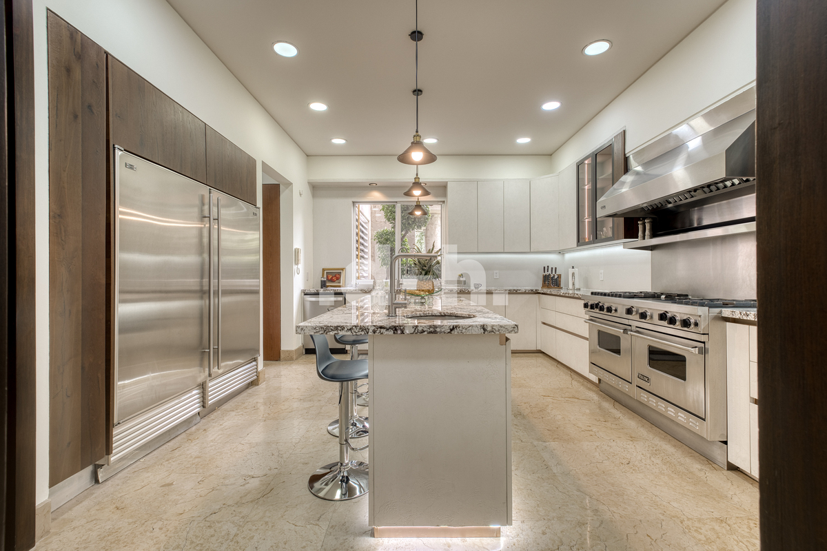 El conjunto incluye también un pequeño departamento independiente junto al elevador, ideal para personal de servicio o escolta; dos bodegas (una de ellas de gran tamaño) y diez lugares de estacionamiento. Todo protegido por un sistema de cámaras internas y alarma integral.