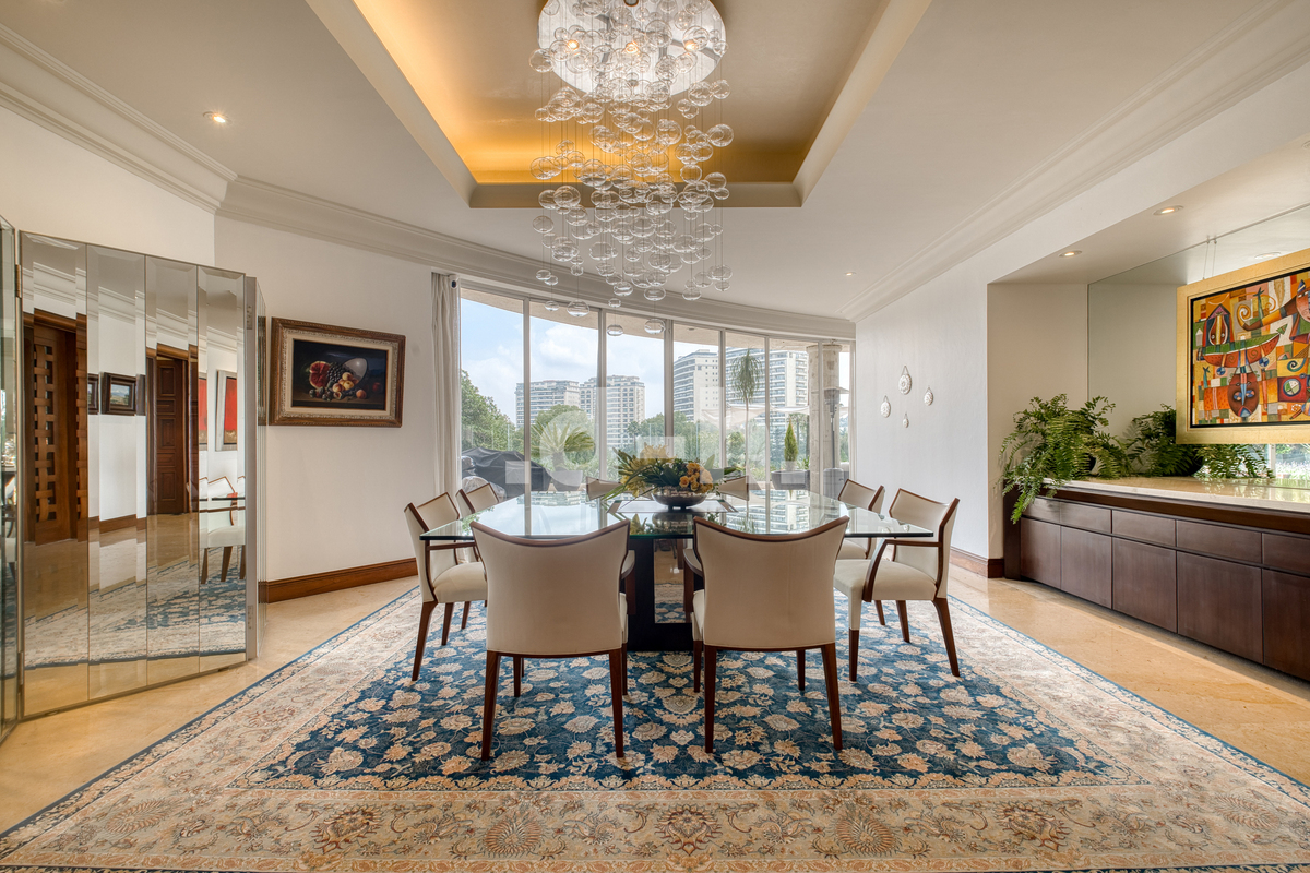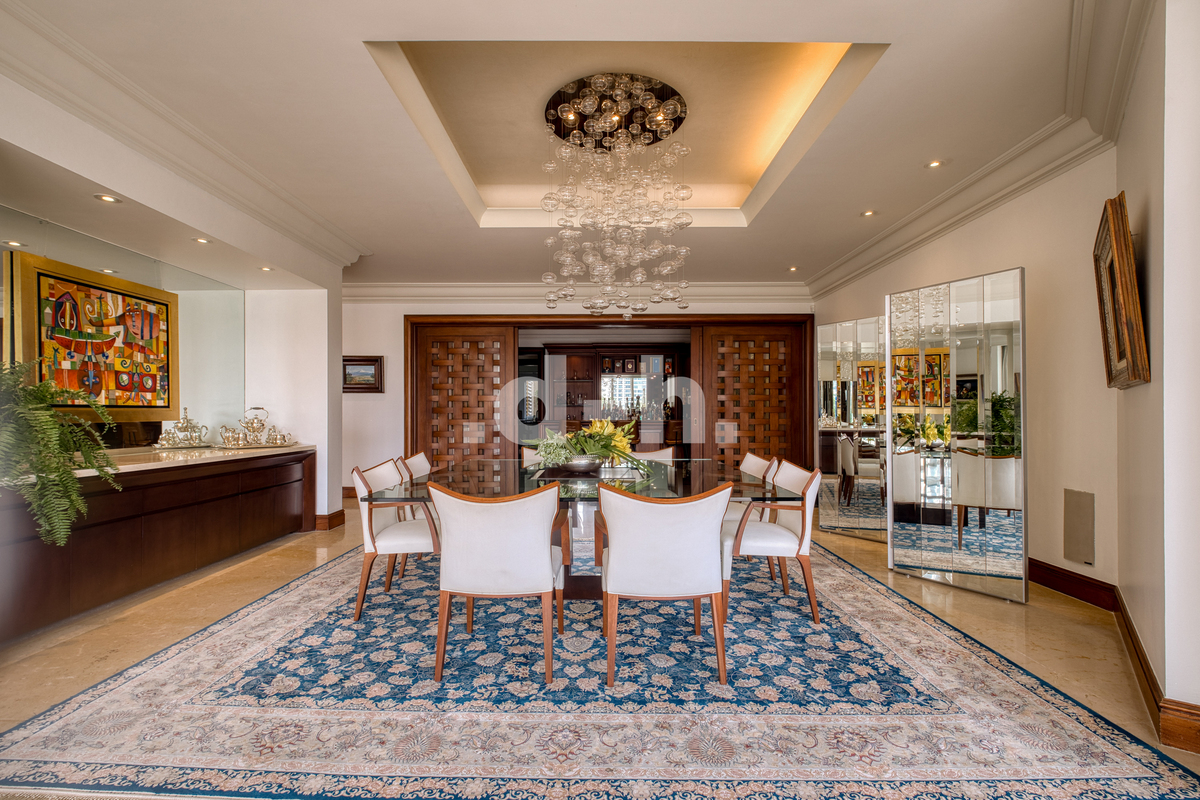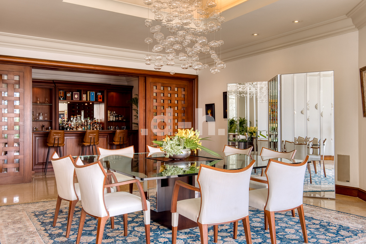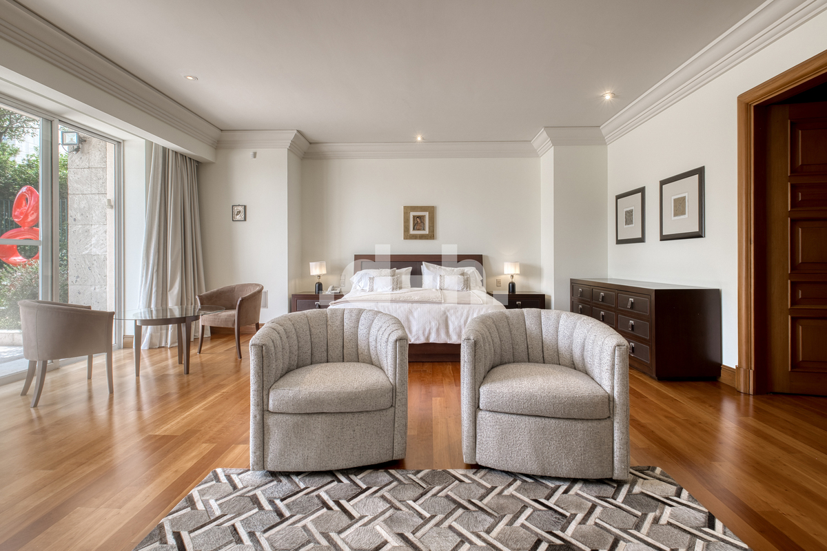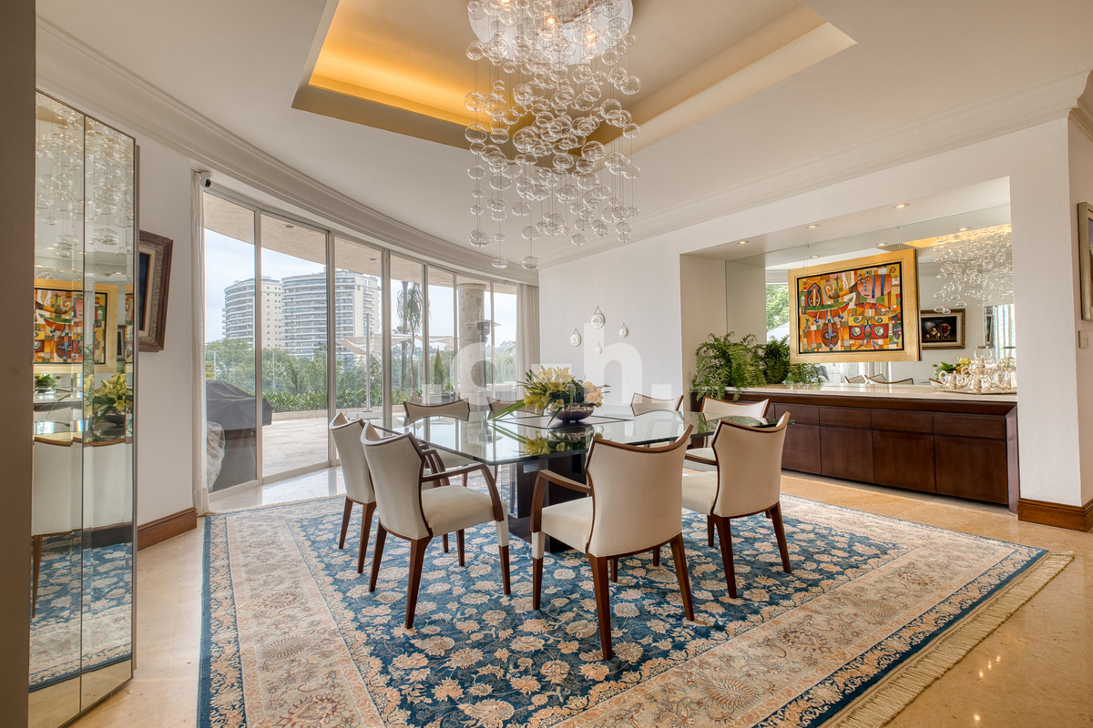 El conjunto incluye también un pequeño departamento independiente junto al elevador, ideal para personal de servicio o escolta; dos bodegas (una de ellas de gran tamaño) y diez lugares de estacionamiento. Todo protegido por un sistema de cámaras internas y alarma integral.