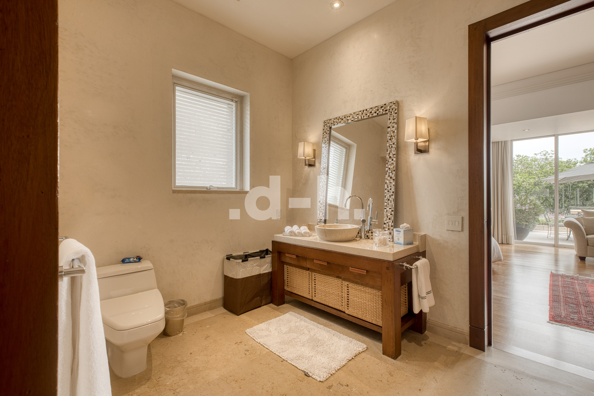 En el corazón del Club de Golf Bosques, este Garden House —resultado de la unión de dos residencias— ofrece más de mil metros cuadrados que miran de frente al campo, donde cada amanecer se desliza entre el verde y el silencio.