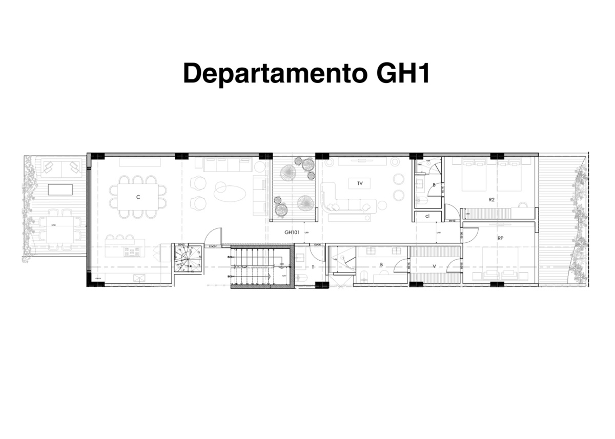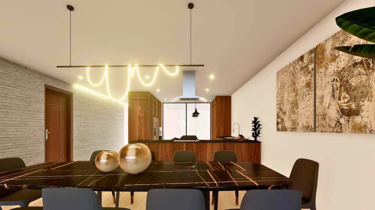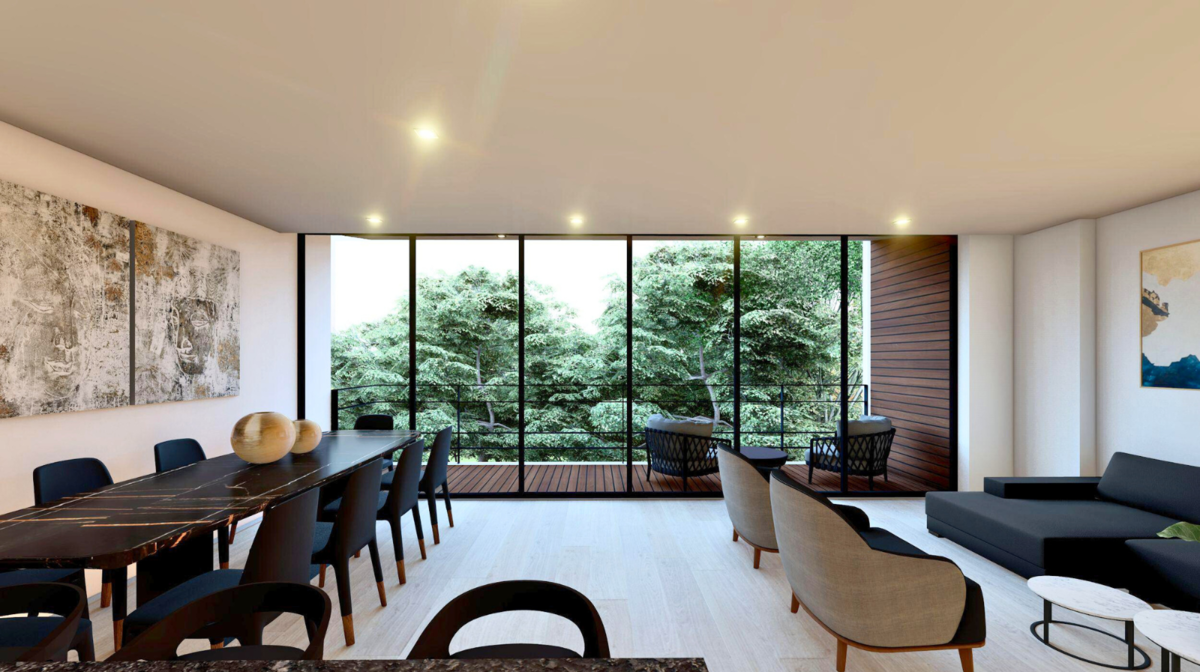 - El departamento contará con 180 m2 interiores y 50 m2 de terrazas (una al frente y otra en la parte posterior).