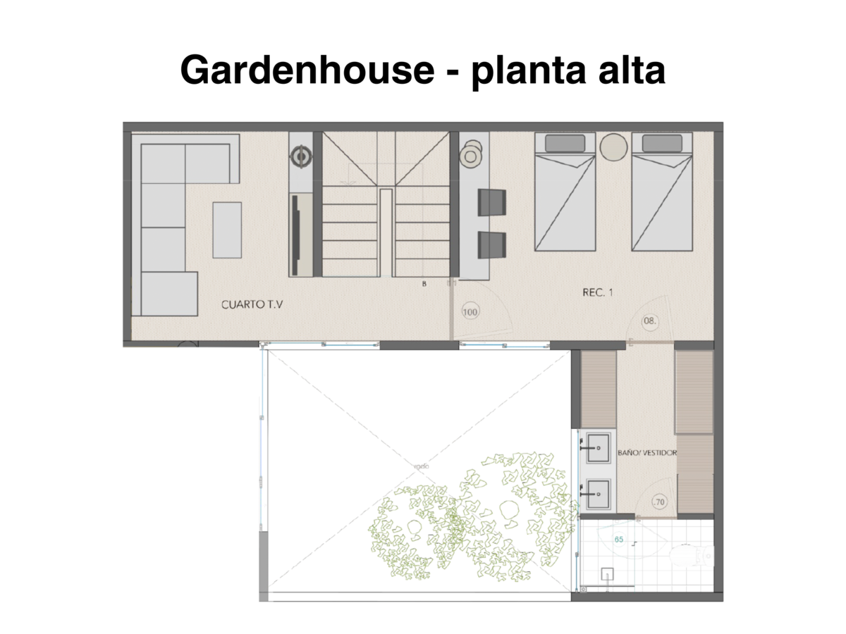 En la planta alta, una elegante sala de televisión conecta con una segunda recámara, que incluye walk-in closet y baño privado.