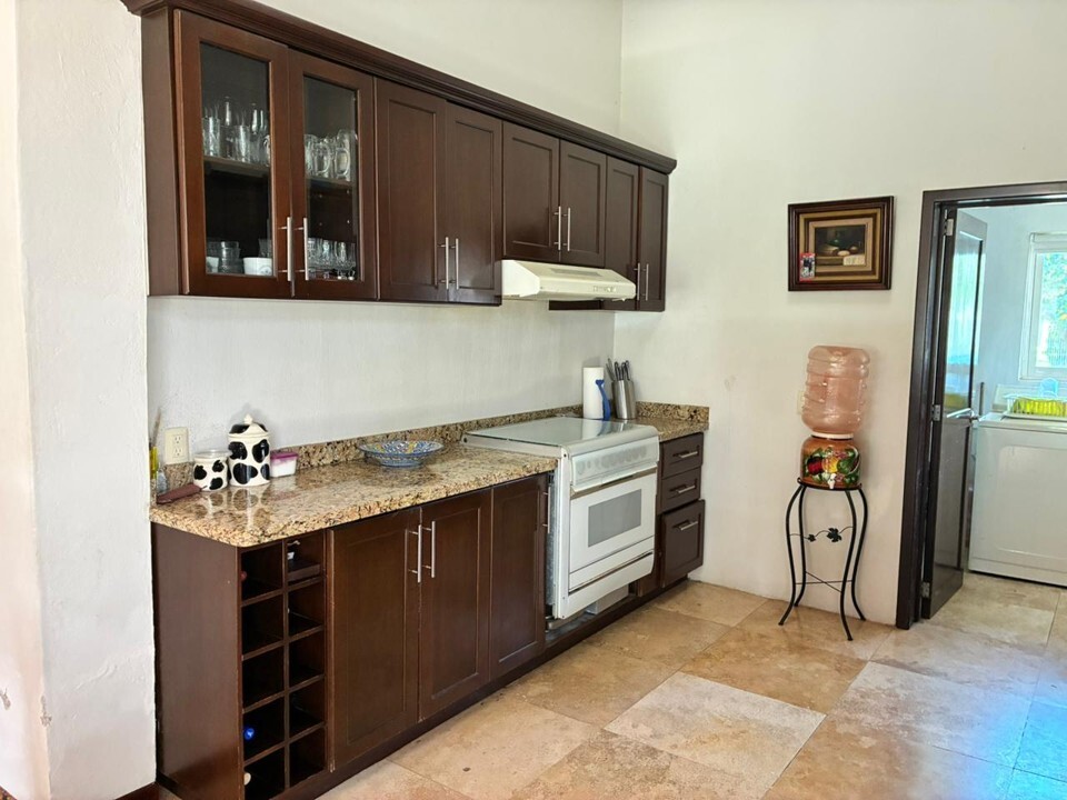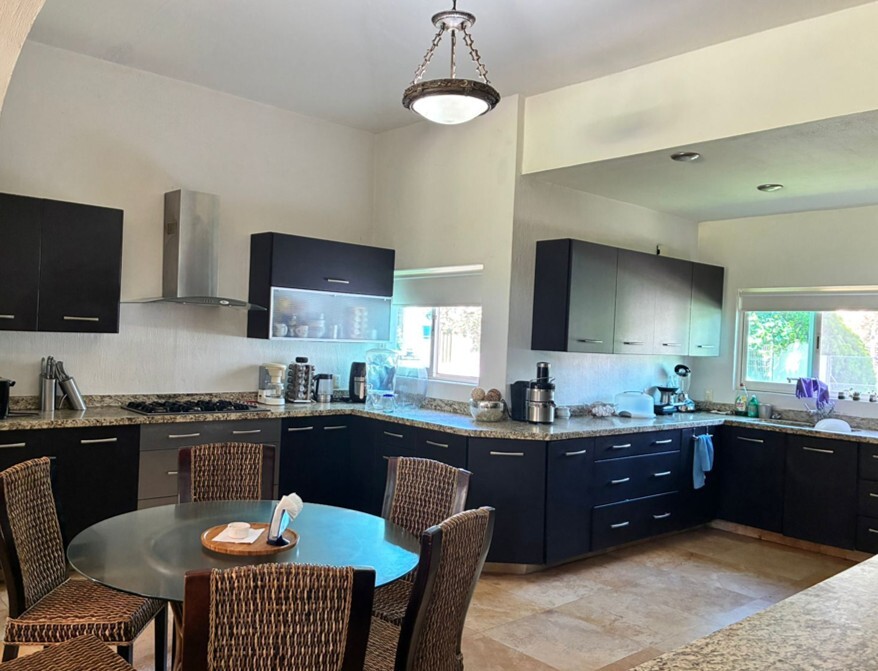 La segunda casa, también con dos niveles, cuenta con cocina completa con barra de granito de marmol, y cuatro recamaras más con baño completo.