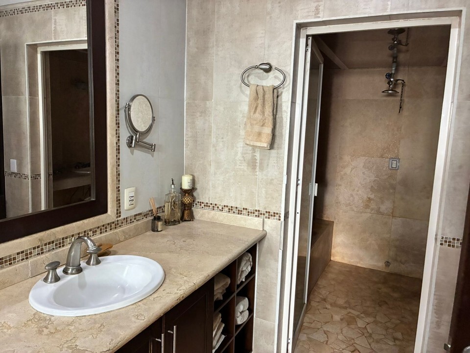 La casa principal nos da la bienvenida en su gran recibidor, seguido de un gran espacio para sala y comedor, con doble altura y arquitectura única, la cocina con barra de marmol de granito, es ideal para pasar horas preparando deliciosos platillos, tiene un medio baño con terminado de lujo y dos recamaras con closet y baño propio, así mismo al fondo encontramos recamara principal con gran tamaño, con walk- in closet, baño de lujo con área de vapor incluido, además de que tiene vista y acceso al jardín trasero. En segundo piso encontramos otra recamara con baño propio y mas arriba encontramos la azotea, con mucho espacio y potencial para tener un espacio más.