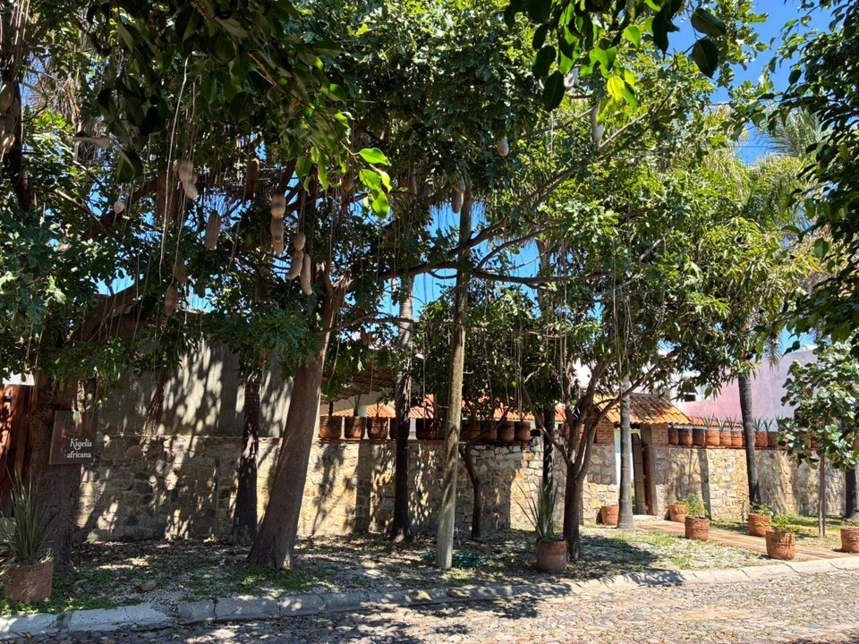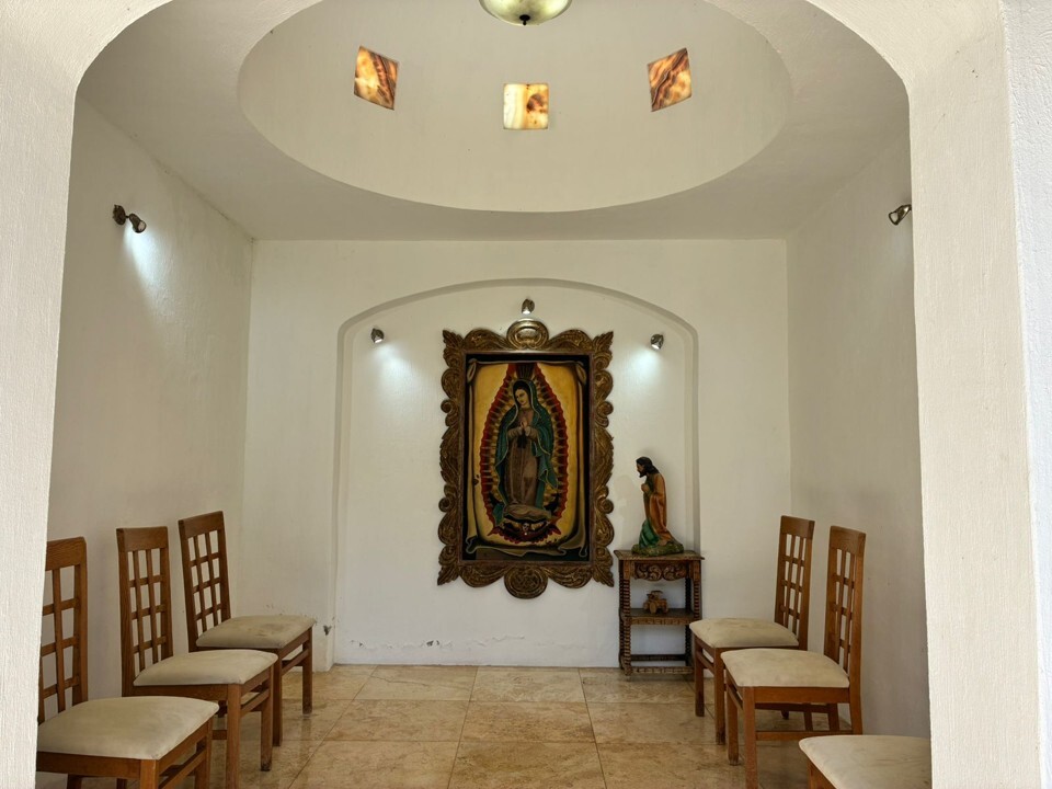 En medio de las dos casas encontramos un camino con dos hermosos muros llorones, que nos llevan a la capilla, donde encontramos a la virgen de Guadalupe.