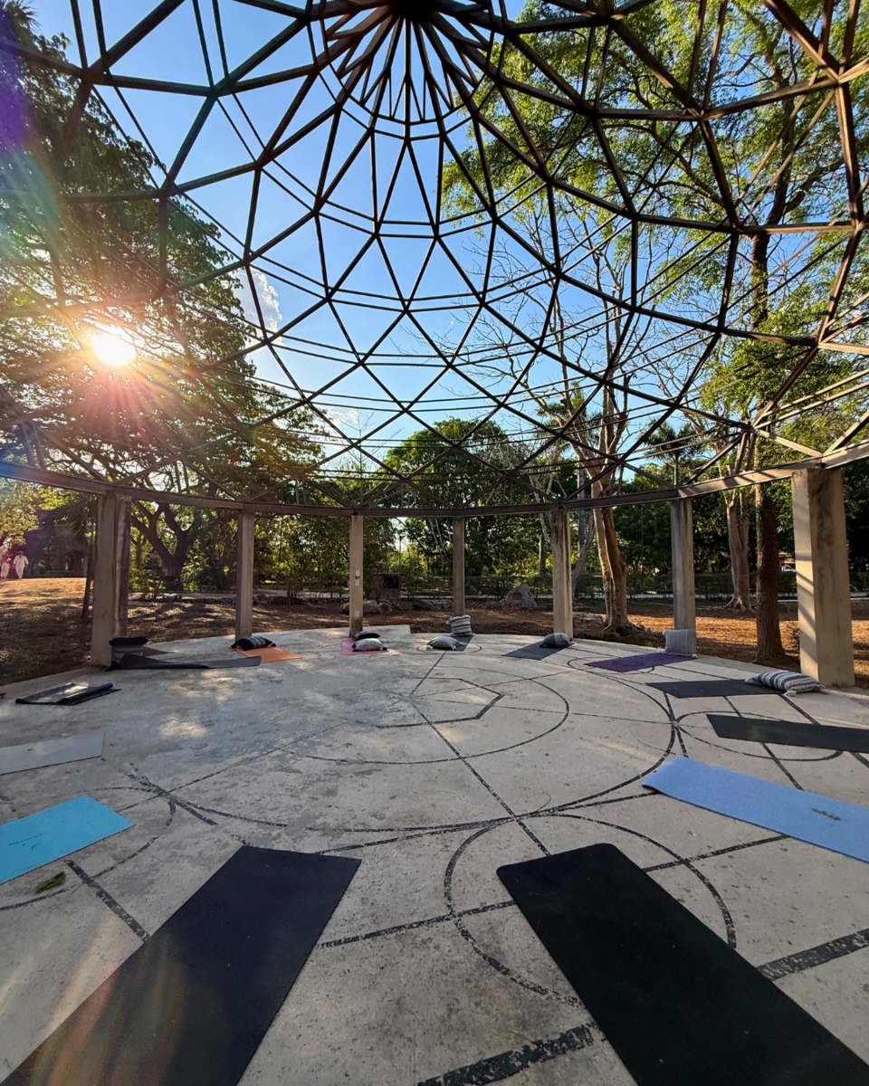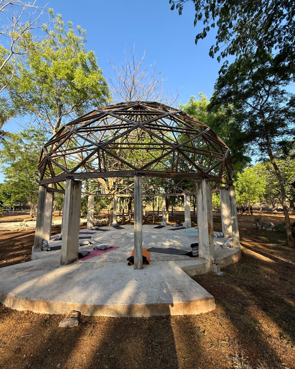 - Jardín yoga con estructura tántrica geodésica.