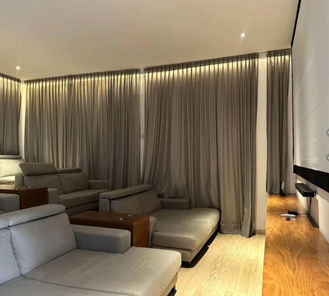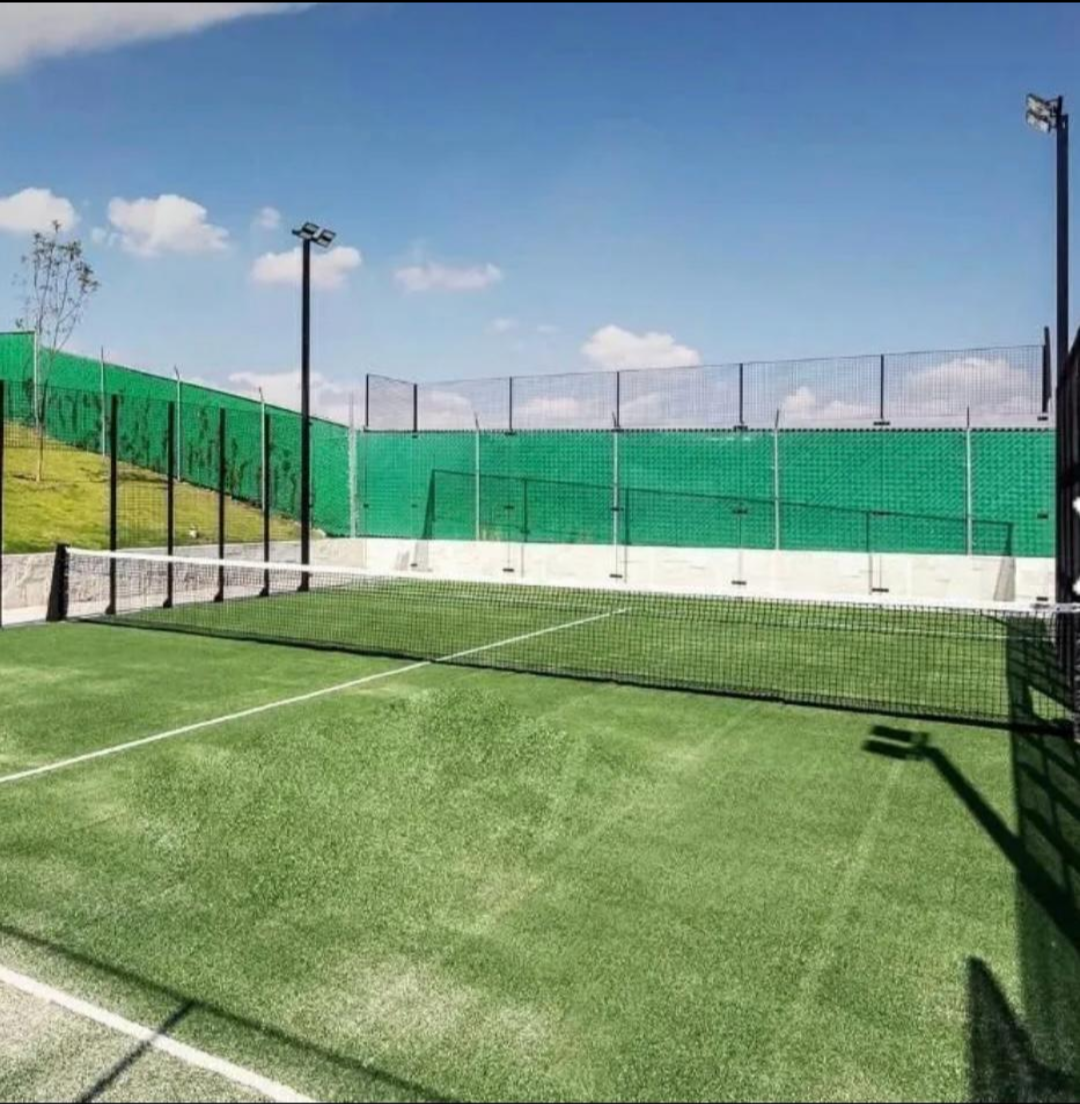 varanda, um mini depósito, e as comodidades, quadra de pádel, sala de jogos, sala de cinema, salão de festas, churrasqueiras, piscina,