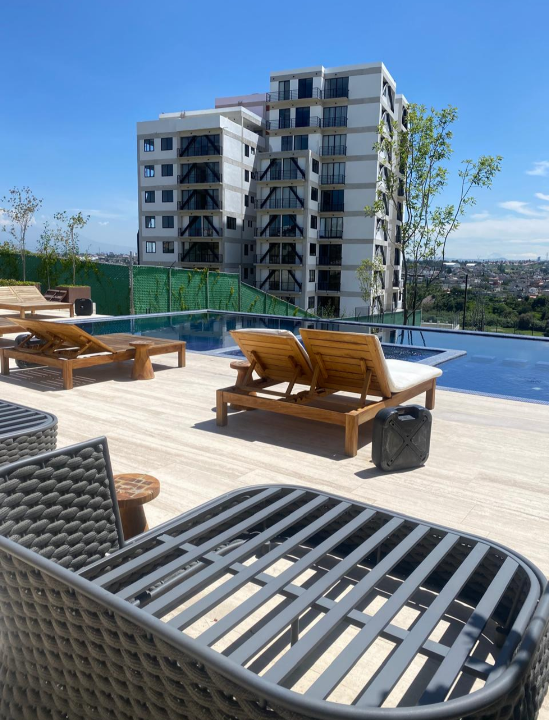 balcón, una mini bodega , y las amenidades, cancha de pádel , salón de juegos , sala de cine , salón de fiestas , asadores , alberca,