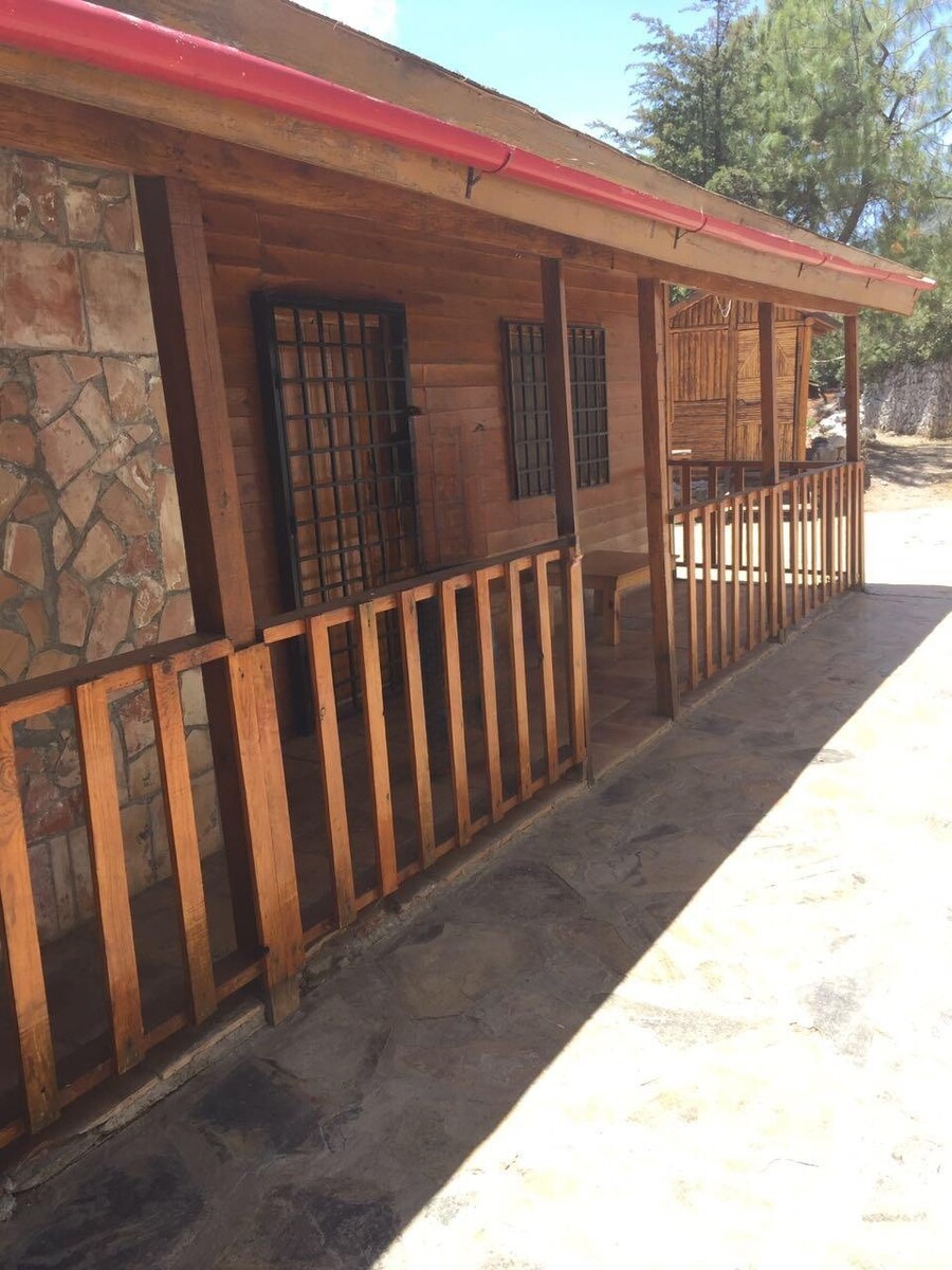 Espaciosa, segura y cómoda cabaña campestre ubicada en la Sierra de la Marta. Hermosos paisajes. Cabaña tipo americana construida en un terreno de 5000 m2. 2 recamaras, 1 baño completo, 2 tapancos, sala , comedor, cocina integral. Palapa, baño exterior. Cisterna de 10,000 lts. 2 tinacos de 1,100 lts c/u. Sistema de energía fotovoltaico, cámaras de seguridad. Amueblada.