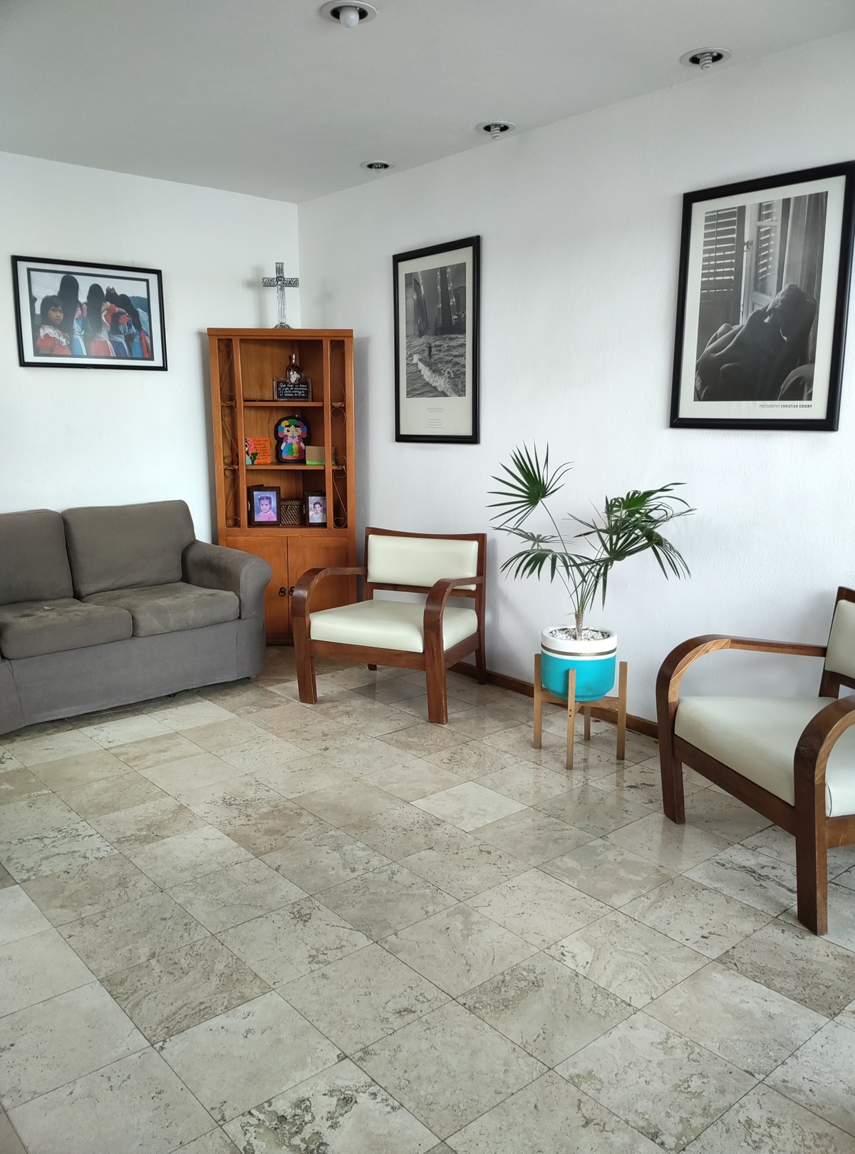 En el nivel de acceso garage para dos autos , medio baño de visitas, sala recibidor.