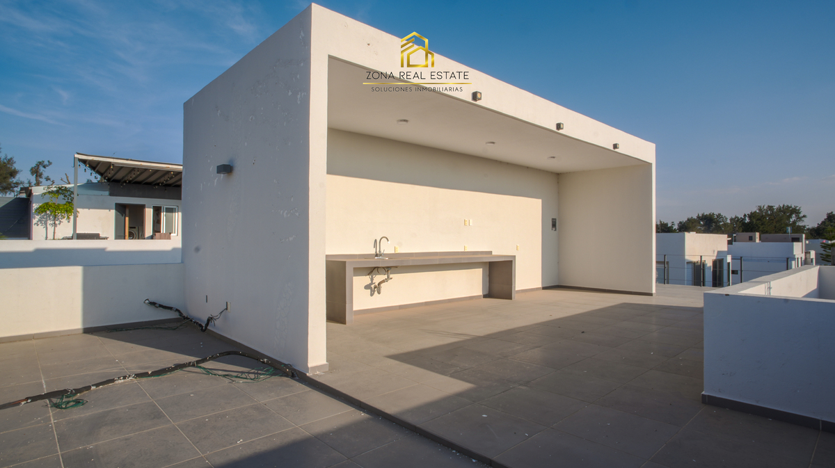 Espacioso roof garden con barra y tarja, ideal para reuniones y disfrutar del aire libre