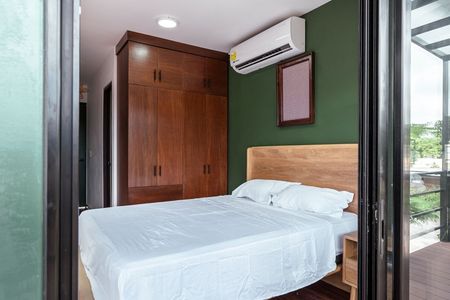 SUÍTE PRINCIPAL COM CLOSET, BANHEIRO, VENTILADOR E AR CONDICIONADO.