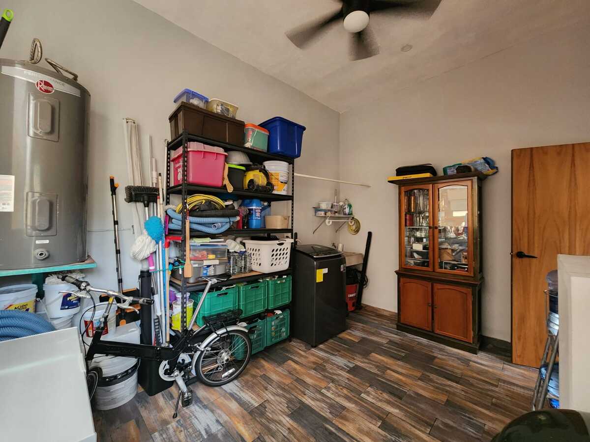 Cuarto de servicio o amplio cuarto de lavado y almacenaje con conexiones de lavadora y secadora.