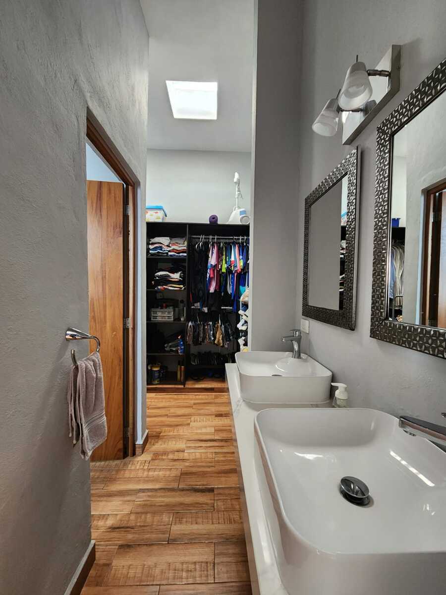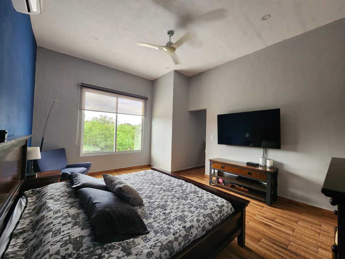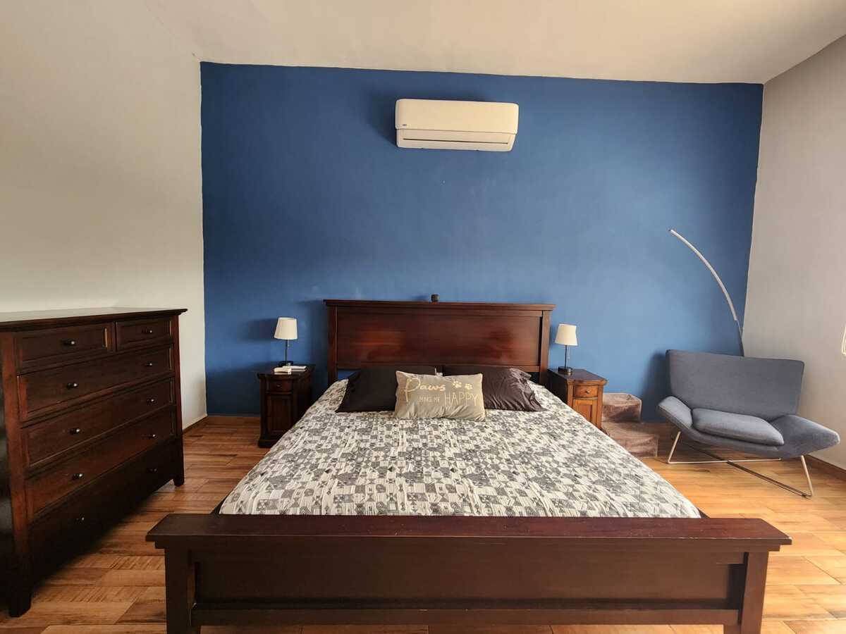 Amplia recamara principal con aire acondicionado, baño completo con doble lava mano y closet vestidor,