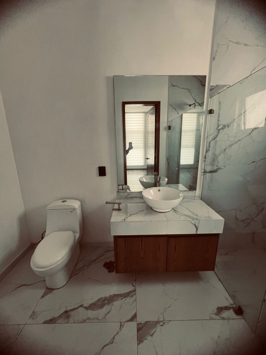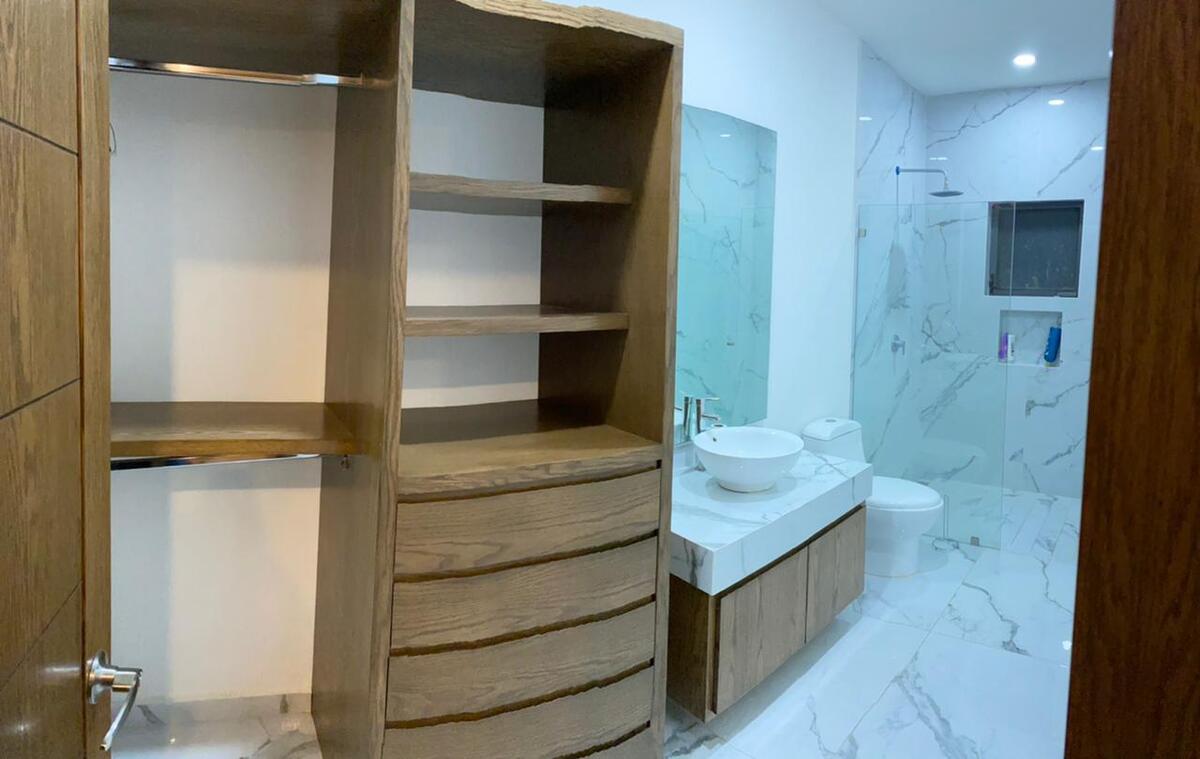 Con 5 recamaras amplias todas con vestidor y baño ( una en planta baja tmb con baño completo que puede ser recámara u oficina)
