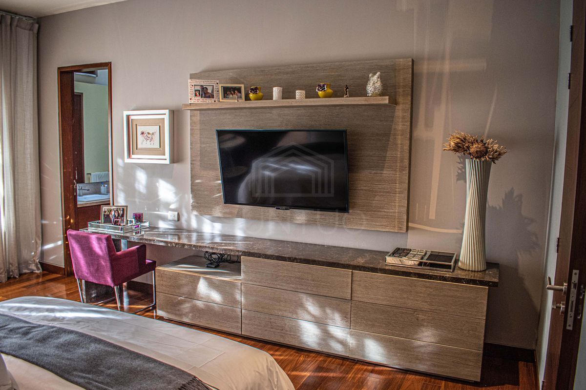 Al continuar por el largo e iluminado corredor tenemos más áreas de almacenamiento, tanto de blancos, enceres y hasta guardarropa. A la izquierda dos amplias recamaras secundarias ambas con pisos de madera, baño completo y amplio vestidor de carpintería fina.