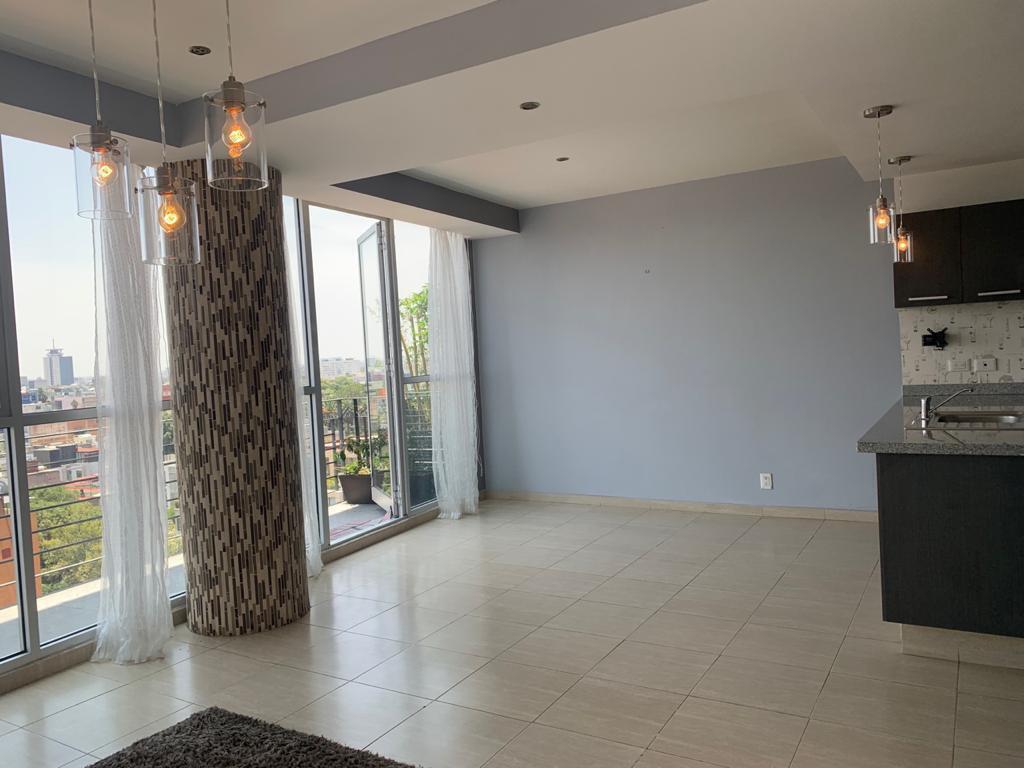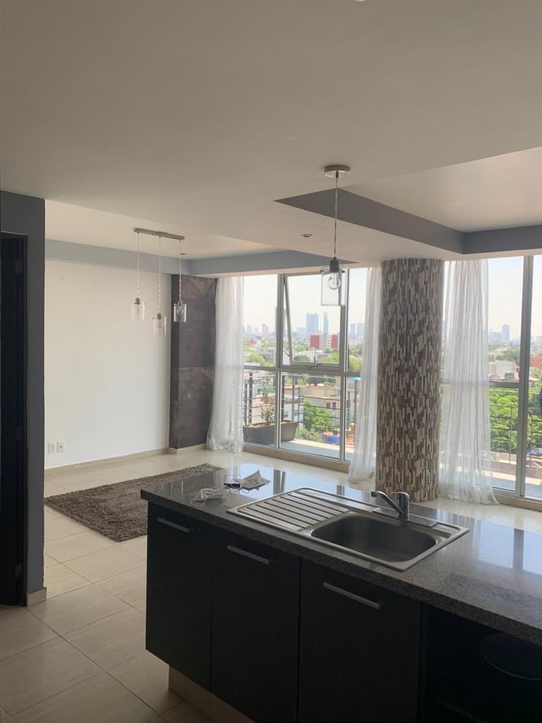 Departamento de 114m2, 2 niveles, 2 recamaras la principal con baño completo y closets, 2.5 baños, Cocina con barra de granito, Balcón de toda el área de sala en comedor, Techos altos, amenidades, alberca, gimansio, ludoteca, etc.