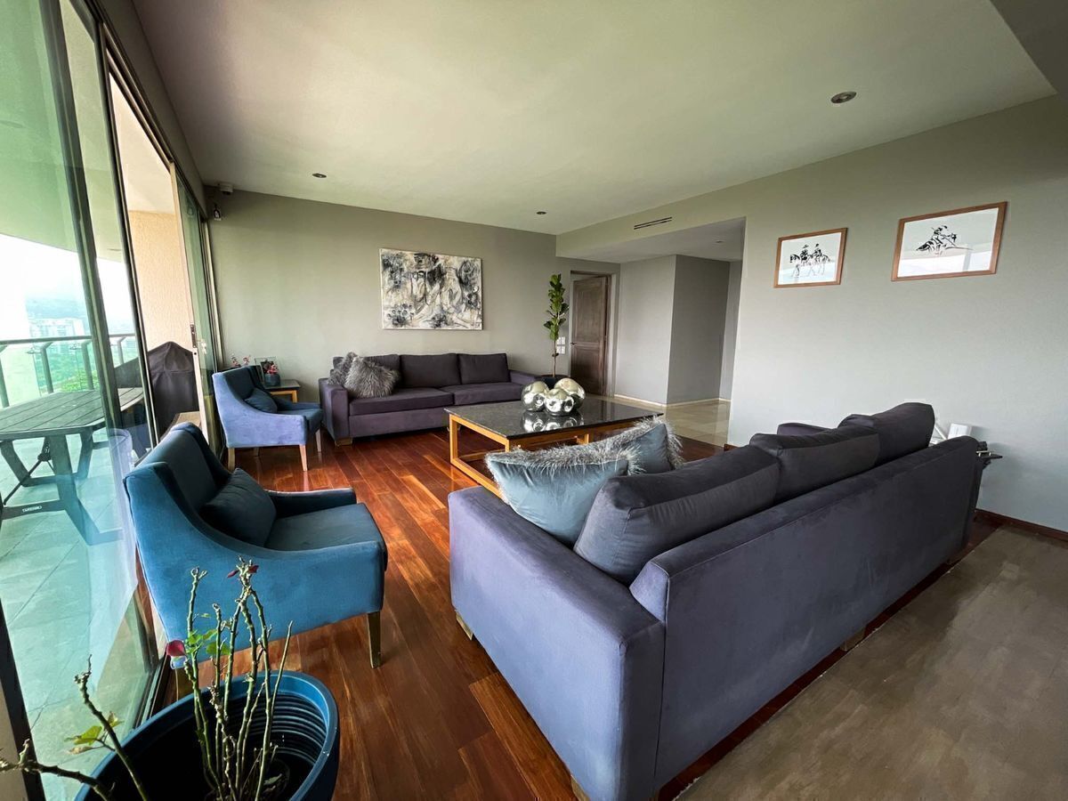 A sala de estar e a sala de jantar são espaçosas e luminosas, com acesso a uma varanda que oferece vistas panorâmicas impressionantes da floresta e do parque de La Mexicana, proporcionando um ambiente tranquilo e relaxante. Também há uma sala de TV separada, ideal para momentos de entretenimento e relaxamento.