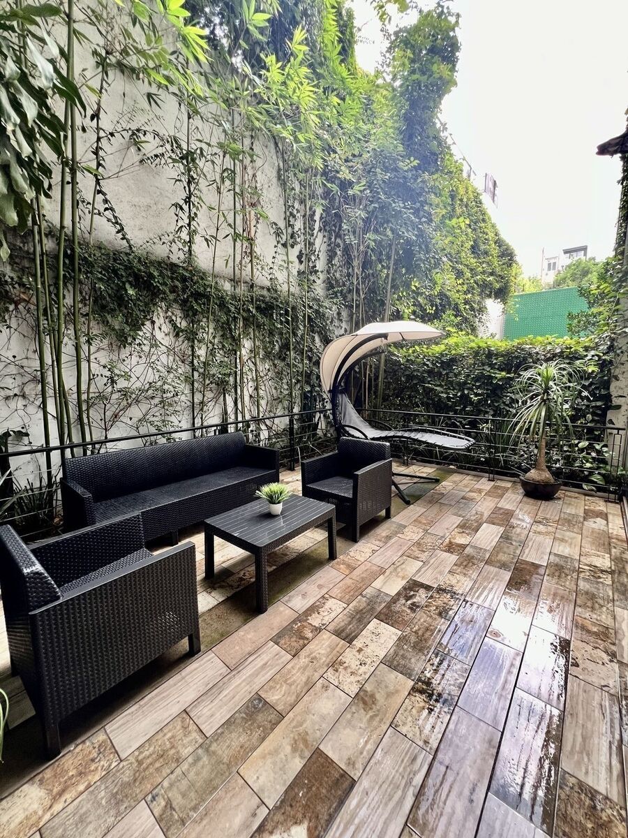 "Apresentamos este encantador garden localizado perto da embaixada espanhola em Polanco. Este lindo apartamento conta com uma ampla e acolhedora sala que se abre para um espaçoso terraço, ideal para desfrutar do ar livre e momentos de relaxamento. A moderna cozinha aberta é perfeita para aqueles que gostam de cozinhar e socializar ao mesmo tempo, e é complementada por uma prática lavanderia e um quarto de serviço com banheiro completo.