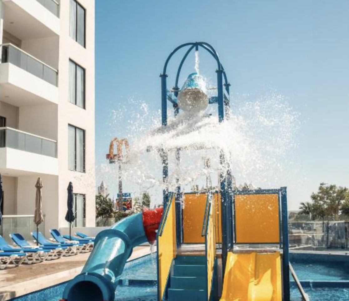 El hotel cuenta con una arquitectura moderna y funcional, distribuida en varios niveles que integran áreas de hospedaje, recreación y servicios, ofreciendo una experiencia completa a sus huéspedes.